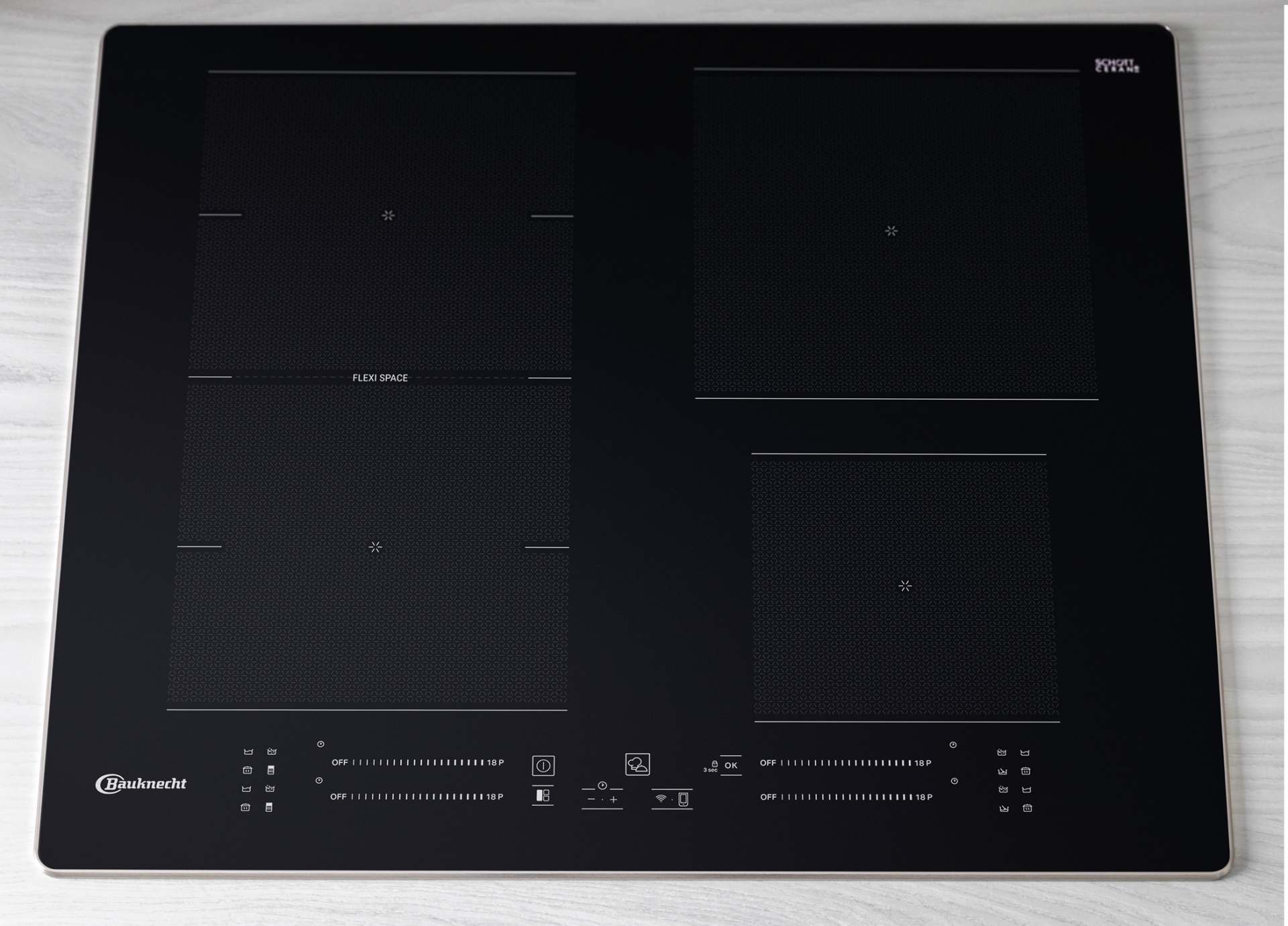 - 4 elektronisch geregelte Induktions-Kochzonen, mit Schmelzstufe und Turbostufe, davon eine Flexizone