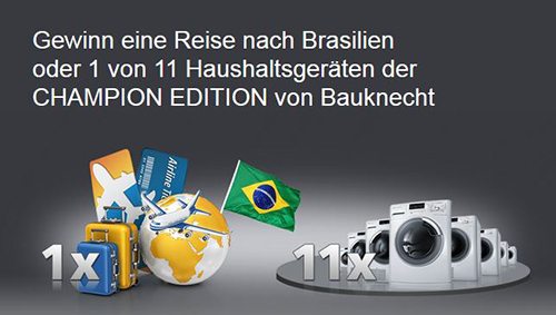 So kann es sein, dass dem glücklichen Hauptgewinner der Verlust des Lieblingsstücks eine Reise für zwei Personen nach Rio de Janeiro einbringt. Elf weitere Teilnehmer auf den Plätzen zwei bis zwölf dürfen sich über eine Waschmaschine oder einen Trockner aus der Bauknecht CHAMPION Edition freuen. Alle Gewinner werden von einer unabhängigen Bloggerjury bestimmt. „Waschen und Trocknen sind auf den ersten Blick keine spannenden oder gar lustigen Tätigkeiten“, sagt Jörn Jacobi, Marketingleiter Germanics bei Bauknecht. „Aber wenn man sich zurückerinnert, sind doch jedem auch schon Missgeschicke passiert, die einen auf den zweiten Blick dann doch zum Schmunzeln bringen“. Bauknecht will die Facebook Community dazu ermutigen, Hausarbeit mit einem Augenzwinkern zu betrachten und belohnt den besten Beitrag mit dem Titel WäscheMeister.Die Teilnahme am Gewinnspiel ist ganz einfach: Bis zum 30. Mai sind User aufgerufen, ein Bild ihrer Wäschepanne oder Wäschesünde hochzuladen und zu beschreiben, wie es dazu kam. Doch nicht nur unfreiwillige Patzer qualifizieren sich für die Einreichung, auch gezielte Sabotageakte sind gern gesehen. Die Teilnahme erfolgt ganz einfach über die Facebook Seite von Bauknecht oder unter www.waeschemeister.de.Am 2. Juni bestimmt die Blogger-Jury, bestehend aus Franziska Schmidt (Modern Snowwhite), Milos Willing (Trendlupe) sowie Jakob Haupt und David Roth (Dandy Diary), die Teilnehmer mit den kreativsten, außergewöhnlichsten oder lustigsten Beiträgen. Der Hauptgewinner kann dann zusammen mit einer weiteren Person für eine Woche die schönsten Sandstrände Brasiliens geniessen. Doch auch die dahinter Platzierten gehen nicht leer aus: Die Plätze zwei bis zwölf nach Jurypunkten werden Teil der „Bauknecht-Elf“. Sie erhalten ihr Wunschgerät: eine Bauknecht Waschmaschine oder einen Trockner aus der CHAMPION Edition.