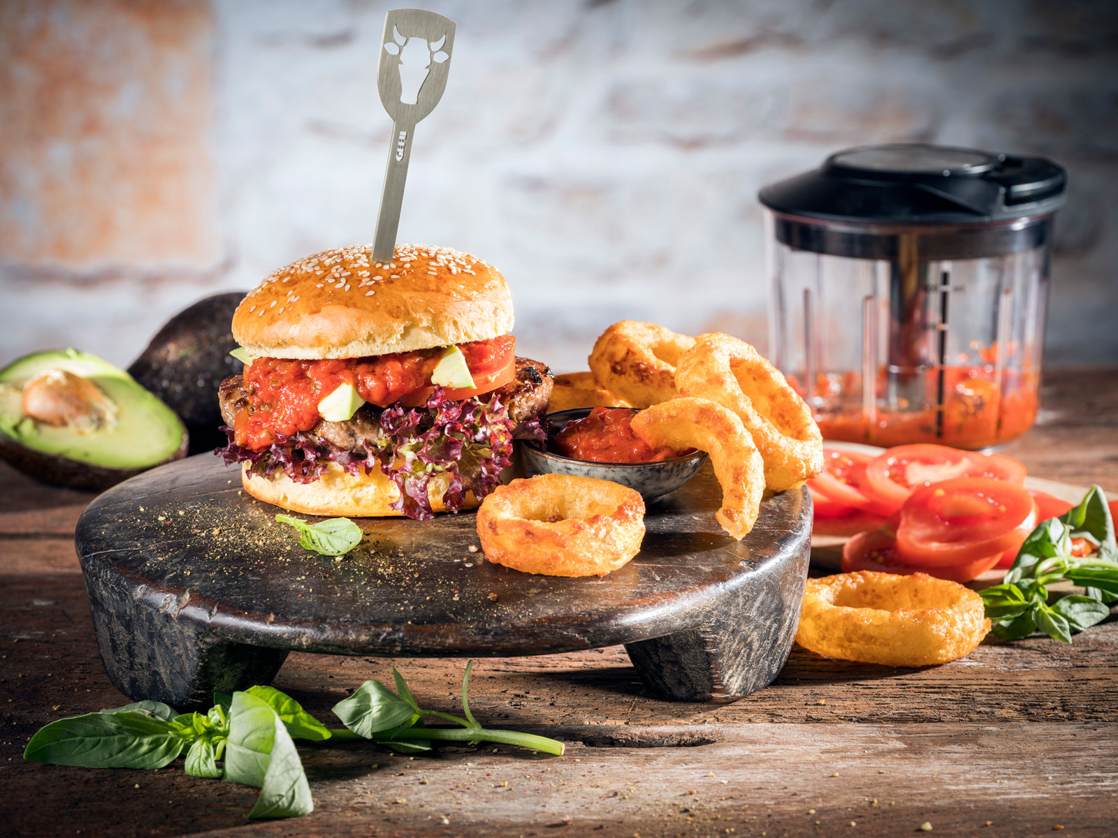 Der Avocado Burger mit selbst gemachten Buns und fruchtigem Tomatenchutney sorgt für den frischen Biss und besonderen Geschmack.