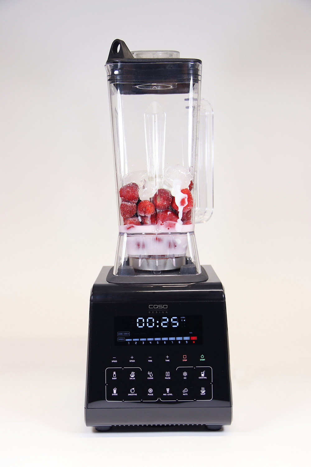 Der von der Jury ausgezeichnete Mixer B3000 Touch ist mit seinem edlen, in schwarz-silber gehaltenem Gehäuse und dem großen Display mit Sensor-Touch Steuerung ein Hingucker in jeder Küche. Mit seinen über 30.000 Umdrehungen pro Minute eignet er sich perfekt für die Herstellung grüner Smoothies. Doch auch Eis, Pesto, Babynahrung, feine Soßen oder Mandelmus gelingen mit dem praktischen Küchenhelfer im Handumdrehen. Zur Ausstattung gehören eine Autoclean- und eine Pulse-Funktion sowie ein bpa-freier, spülmaschinenfester Mixbehälter mit zwei Litern Fassungsvermögen.