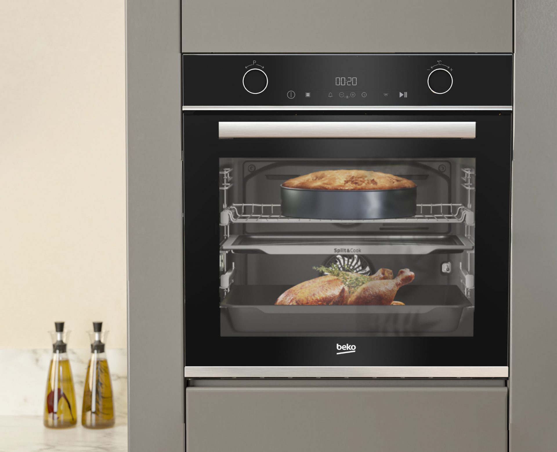 Der Beko Backofen BBVM13400XDS ist ein Einbaugerät dessen Garraum geteilt werden kann.