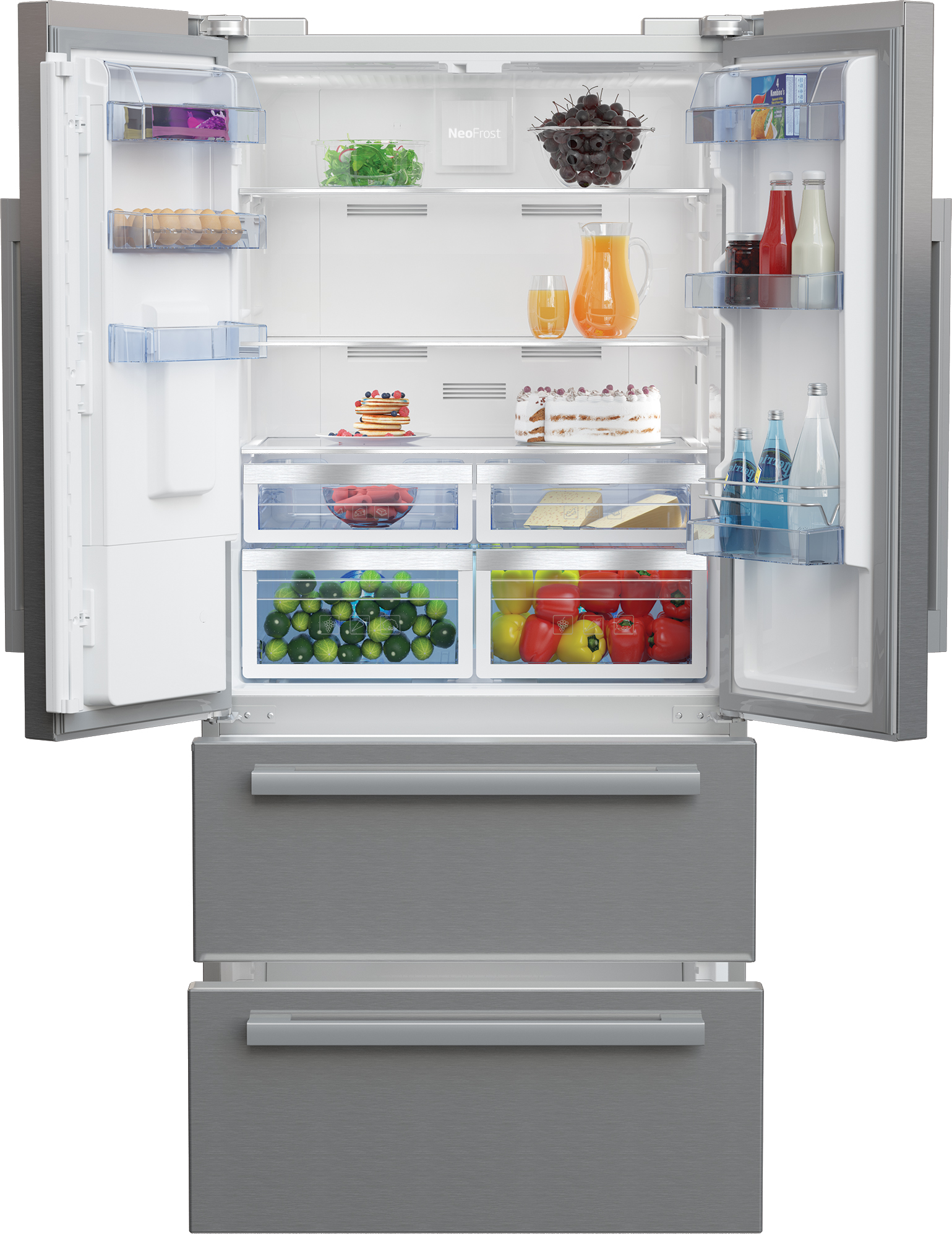 Für die optimale Lagerung von frischen Lebensmitteln sorgen gleich mehrere Fächer. Mit ActiveFreshBlue Lights bleibt der Vitamingehalt von Obst und Gemüse erhalten und frische Lebensmittel lassen sich um ein Vielfaches länger lagern als in herkömmlichen Kühlschränken. Die NeoFrost-Technologie verbindet die No Frost-Technologie, die die Eisbildung im Gefrierteil verhindert, mit der Umluftkühlung –also zwei separaten Kühlkreisläufen im Kühl- und Gefrierteil. Diese Trennung verhindert in der Beko Kühl-/ Gefrierkombination GNE 60530 DX eine mögliche Geruchsübertragung zwischen beiden Bereichen, sorgt für eine stabilere Lufttemperatur und stellt im Kühlteil eine angemessene Luftfeuchtigkeit sicher.