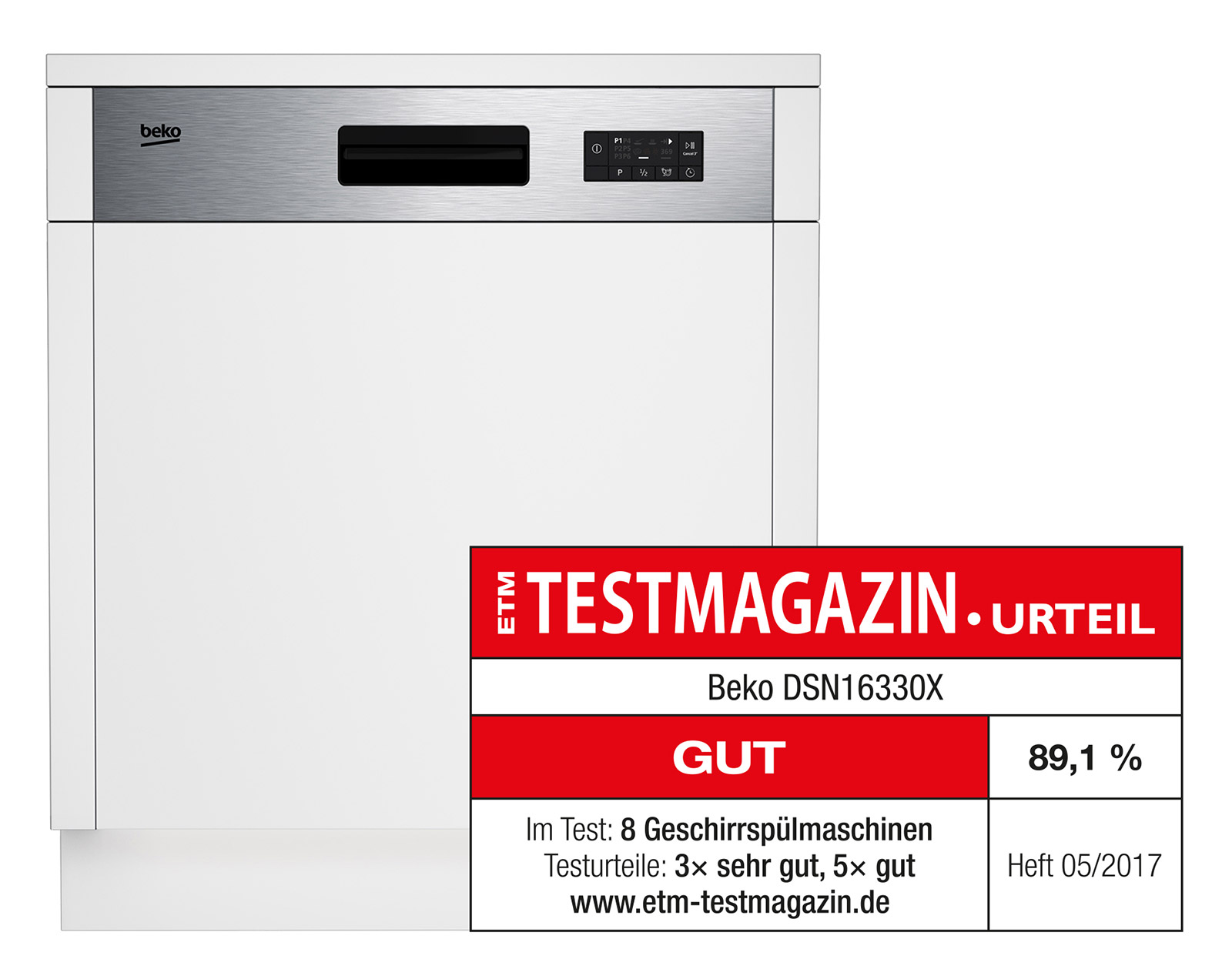Mit dem Gesamturteil „Gut“ (89,1 %) konnte der Geschirrspüler DSN16330X in der aktuellen Ausgabe des ETM Testmagazins (05/2017) glänzen. Die beste Bewertung erhielt das Gerät in den Kategorien Betrieb und Funktionalität. Besonders positiv schnitten hier die sehr gute Reinigungs- sowie Trocknungsleistung ab.