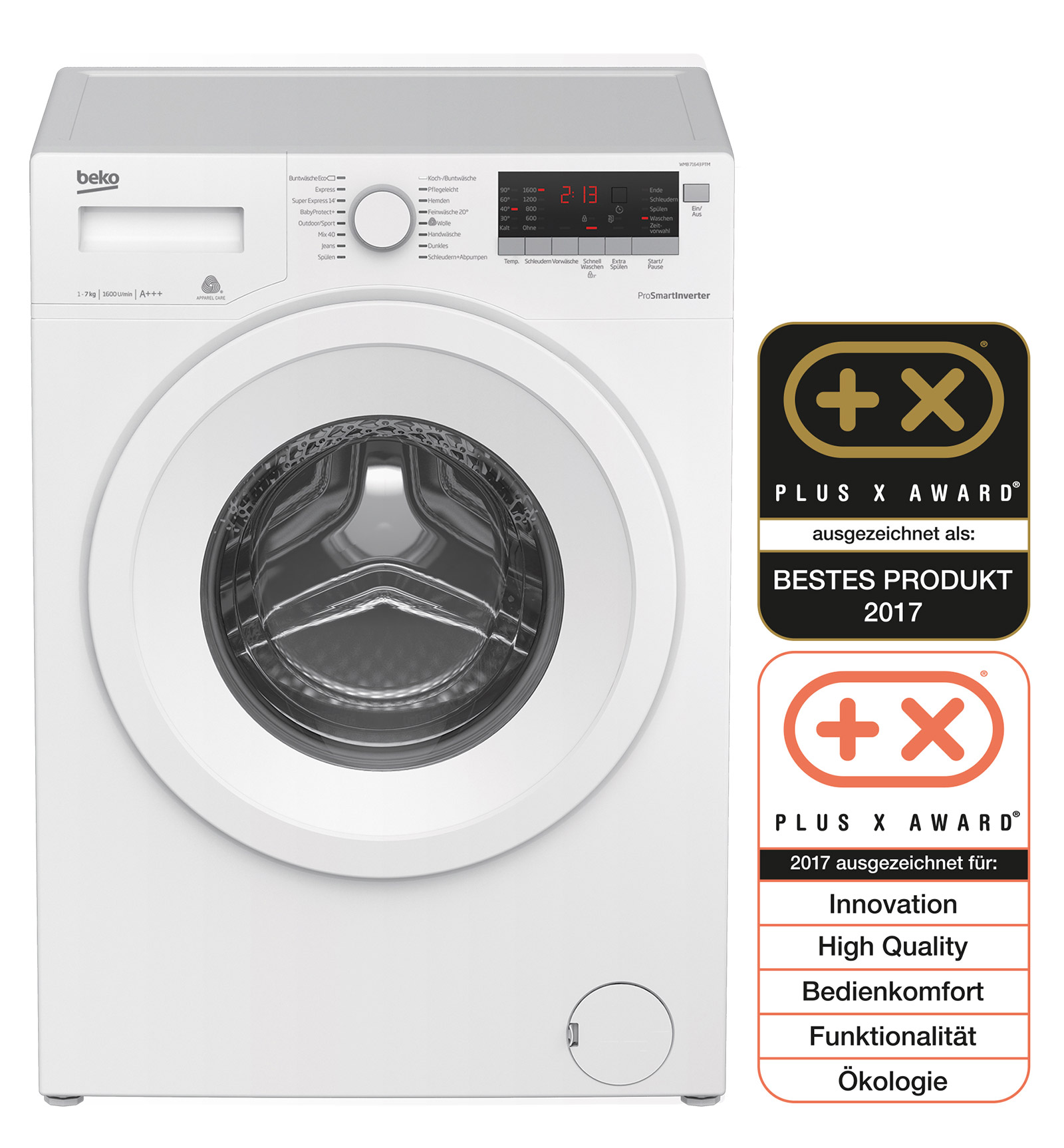 Die Haushaltshelfer von Beko wurden gleich mehrfach ausgezeichnet: So erhielt die Waschmaschine WMB 71643 PTM den „Plus X Award“ in den fünf Kategorien Innovation, High Quality, Bedienkomfort, Funktionalität sowie Ökologie. Mit der höchsten Anzahl an Gütesiegeln wurde der Nachfolger des bisherigen Bestseller-Modells im Bereich Waschen von der Experten-Jury zudem als „Bestes Produkt des Jahres 2017“ prämiert.