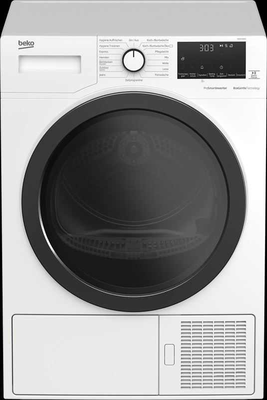 - 15 Programme: Cottons, Koch-/Buntwäsche Öko-Dry, Synthetics, Mix, Wolle, Leise, GentleCare, Trocknerkorb / Zeitprogramme, Jeans, Outdoor / Sport, Bettdecken / Daunen, Hemden 30′, Mini 14′, Hygienic Drying, Hygienic Refresh
