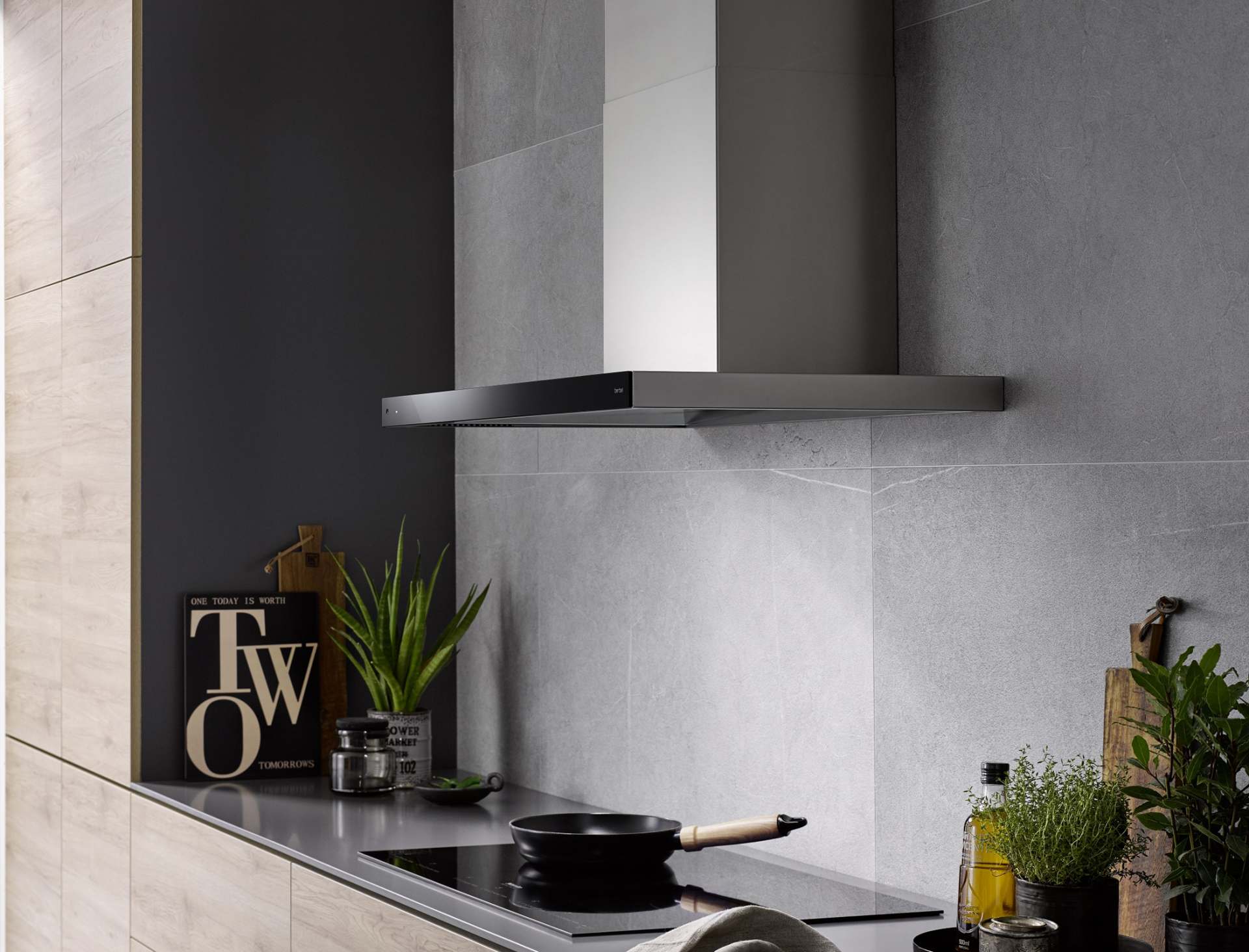 Eine besonders komfortable Bedienung verbirgt sich hinter der Glasblende an der Frontleiste der Wandhaube. Das „seamless“ Bedienkonzept wird erst bei Berührung sichtbar und lässt sich selbst mit nassen Fingern problemlos bedienen.