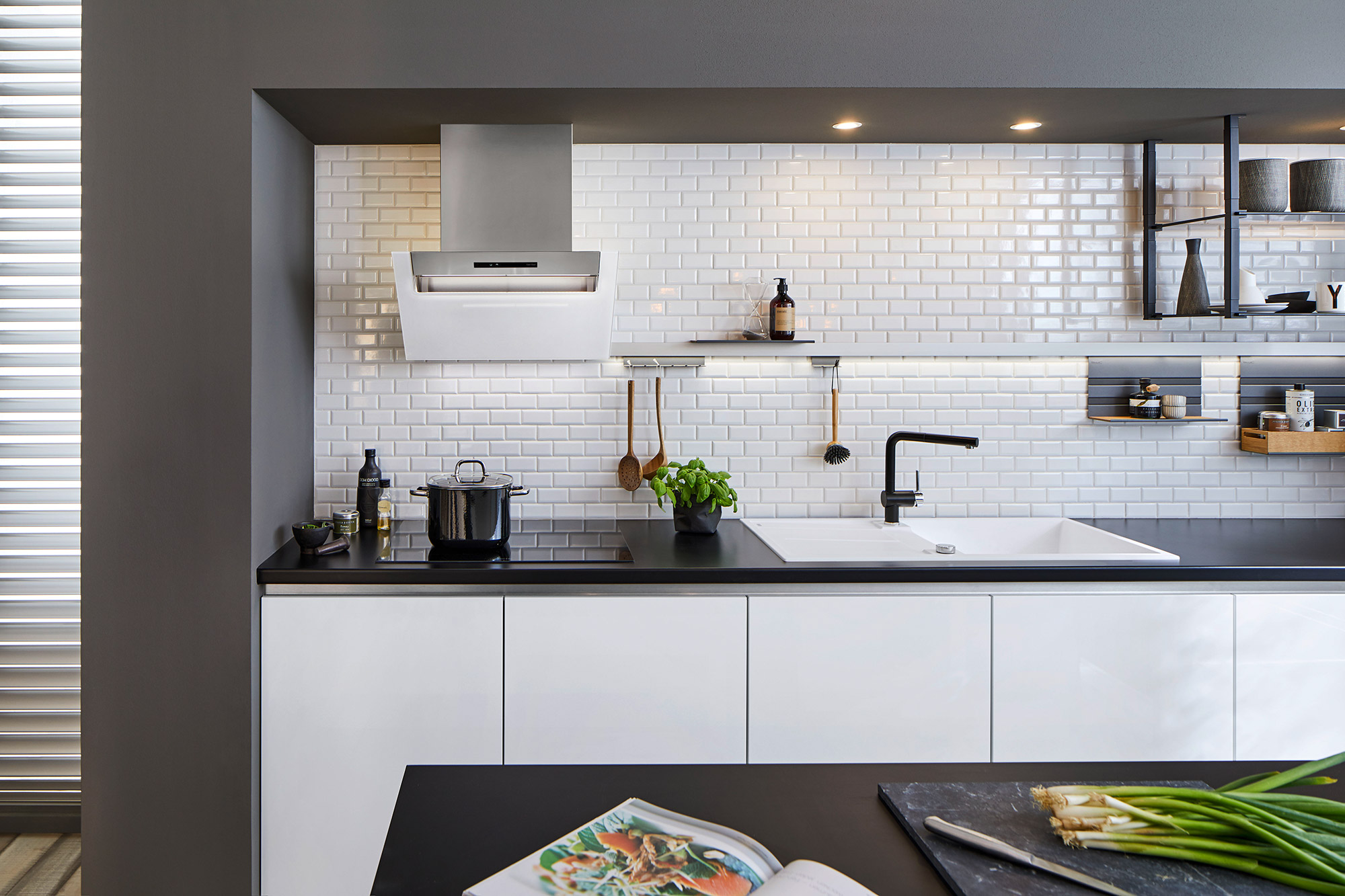 Durch die ergonomisch durchdachte Form bietet die Kopffreihaube „Ergoline 2“ absolute Bewegungsfreiheit beim Kochen. Die Klappe lässt sich durch die gedämpften und freilaufenden Scharniere leichtgängig und selbstständig öffnen. Selbst in kleinen Apartments findet eine Ergoline bequem Platz: Dank der neuen, 60 oder 70 cm breiten Versionen ist ein guter Dunstabzug keine Frage des Platzes mehr. Die beiden schmaleren Hauben stehen den größeren bei der Leistungsfähigkeit und beim Design in nichts nach.