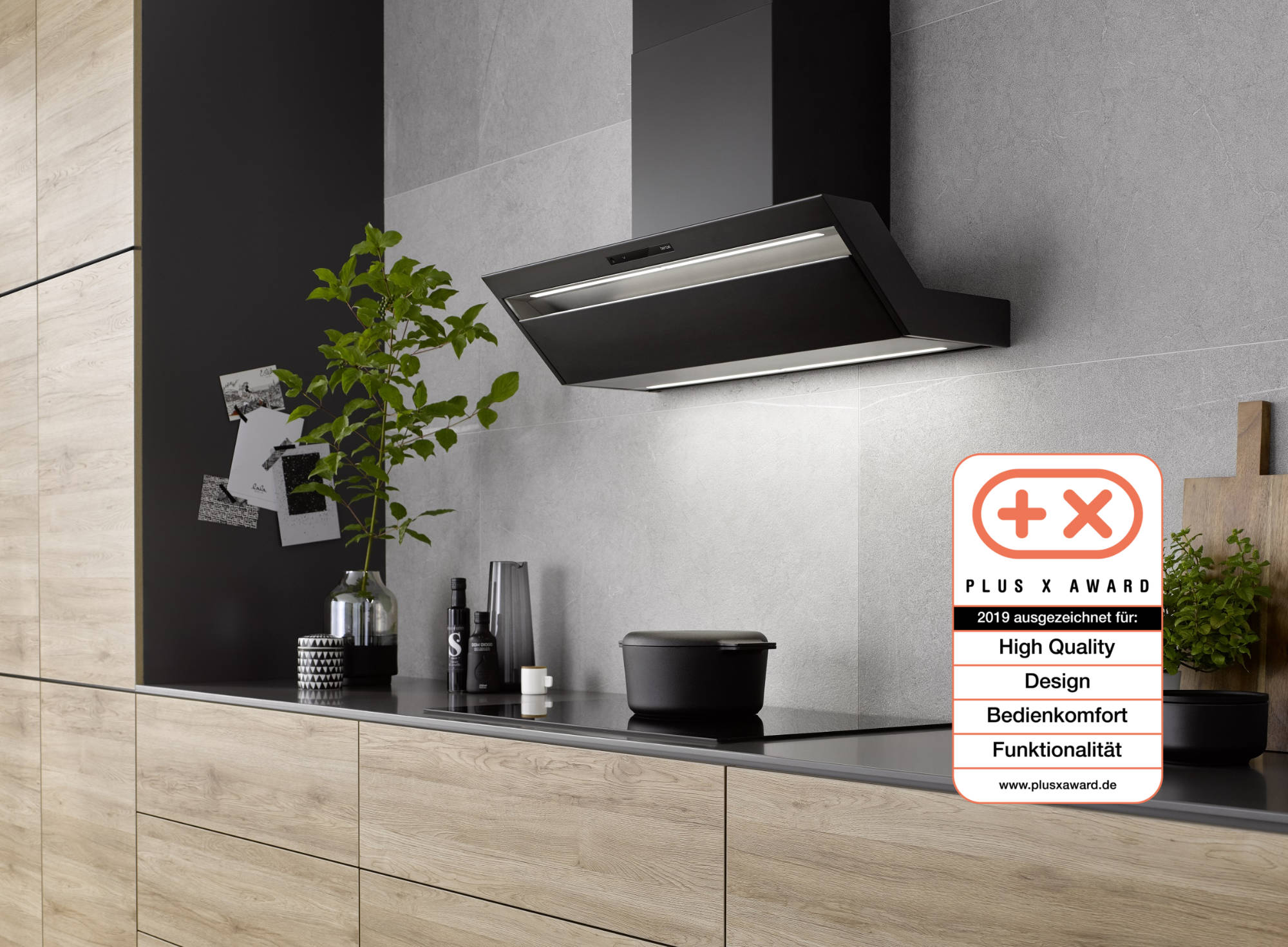 Die Kopffreihaube „Formline“ von Berbel erhält den Plus X Award 2019. Purer Edelstahl im Industrial Design, eine einfache Bedienung und eine leistungsstarke Performance: Die Kopffreihaube „Formline“ vereint damit alles, was man von einem Berbel Abzug erwartet. Der robuste, komplett verschweißte Edelstahlkorpus besticht mit optimierten Proportionen. Das gradlinige Design unterstreicht den Industrial Charme. Neben der Ausführung in Edelstahl wird es die 90er Variante zukünftig auch – vom Korpus bis zum Schacht – in edlem mattschwarz geben.