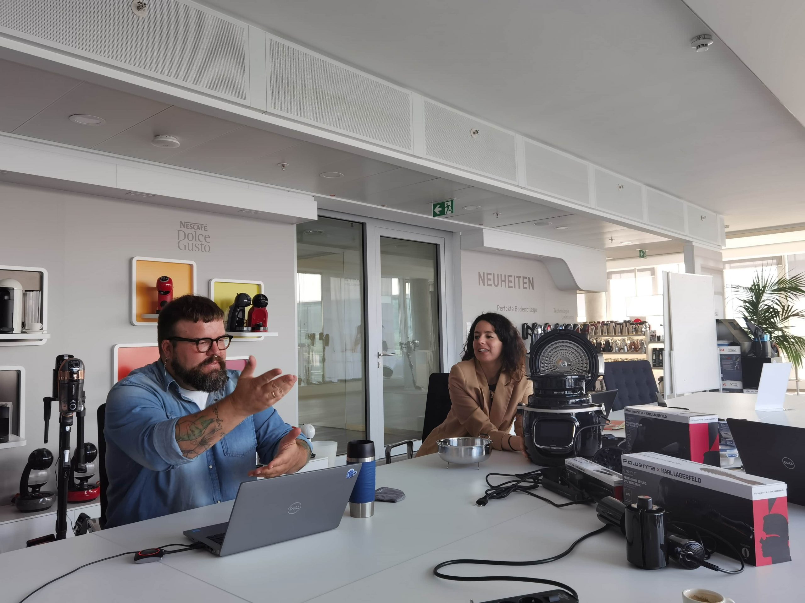 Neuheiten-Präsentation bei der Groupe SEB u.a. mit Sharon Spinelli (Marketing Manager Kitchen Electrics DACH) und Social Media Manager Claus Fleissner. Fotos: Wagner, Groupe SEB