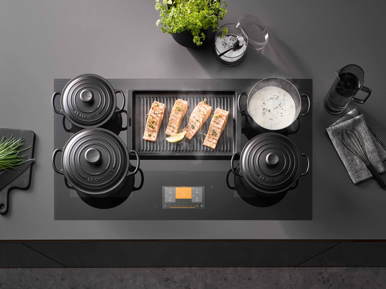 Und weil die Deutschen so gerne grillen – nicht nur Outdoor – gibt es auch Induktionskochfelder mit einer Sensor-Grill-Funktion. Sie aktiviert sich automatisch, sobald der passende Grillaufsatz wie eine Barbecue- oder TeppanYaki-Edelstahl-Grillplatte auf das Kochfeld aufgesetzt werden.
