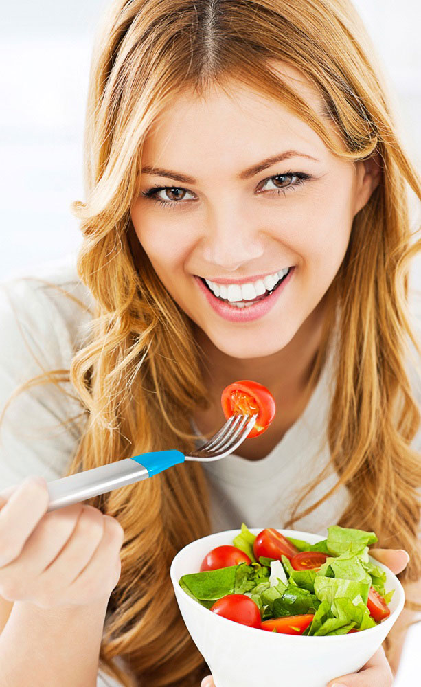 Es gibt eine Regel: Langsam essen, gut kauen. Das heißt, sich nicht das Essen in den Mund stopfen und die Gabel am besten immer wieder auf dem Teller ablegen. Wer die dafür nötige Disziplin nicht aufbringt – es schmeckt halt so gut – der kann die Hapifork ausprobieren. Die leuchtet auf und vibriert, wenn man zu schnell isst …