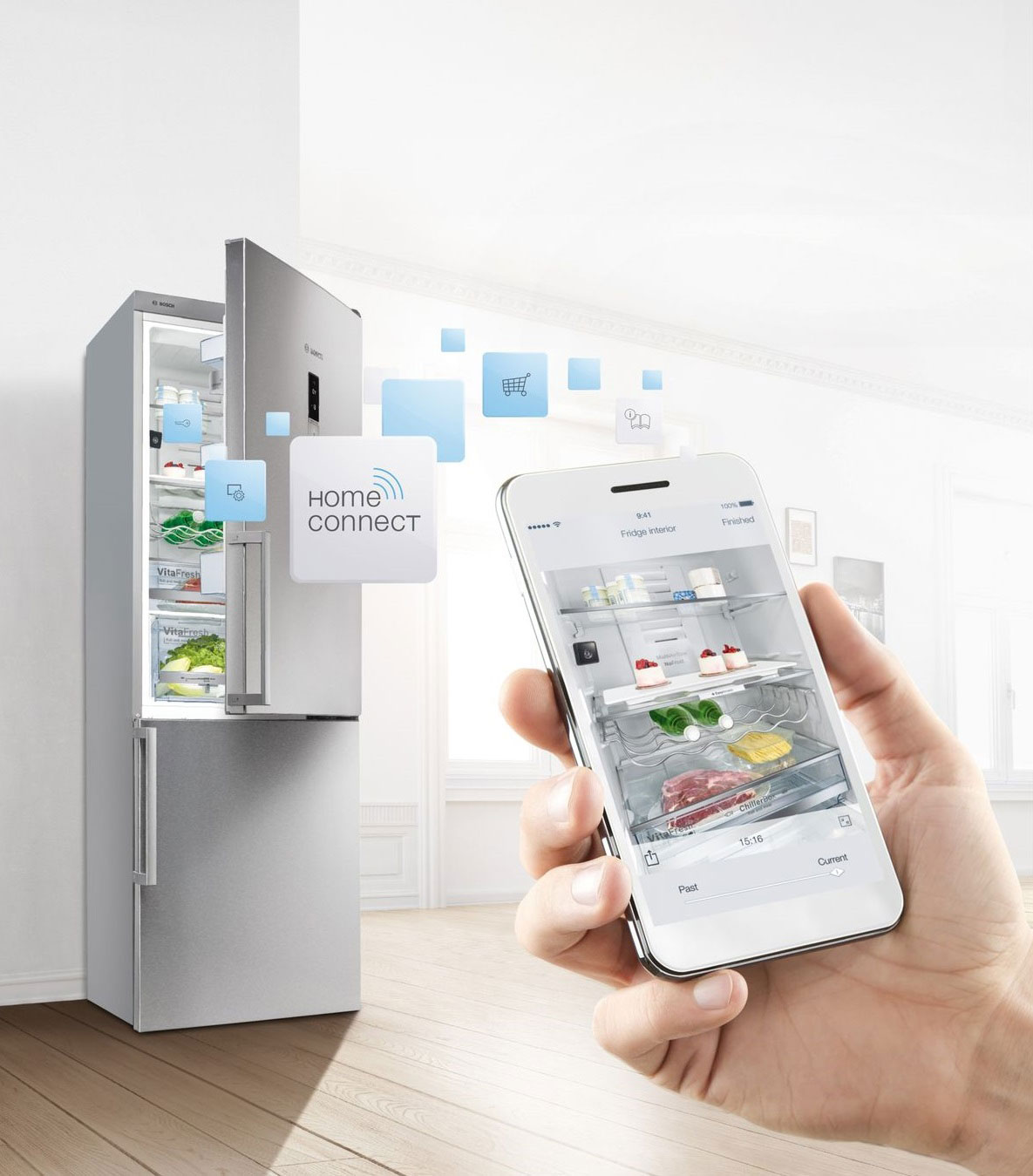 Auch Kühlschranke können smart sein. Sie erkennen nicht nur die Lebensmittel, die in ihnen lagern, sondern benachrichtigen auch per Handy-Message, wenn sich das Verfallsdatum nähert. Oder wenn man vergessen hat, die Türe zu schließen. Steht man im Supermarkt und hat seine Einkaufsliste vergessen, dann schaut man schnell nach, was aktuell im Smart Fridge steht und was fehlt. Nützlich beim Einkaufen, da man nur das kauft, was man auch braucht. Das funktioniert über eine im Kühlschrank integrierte Kamera.