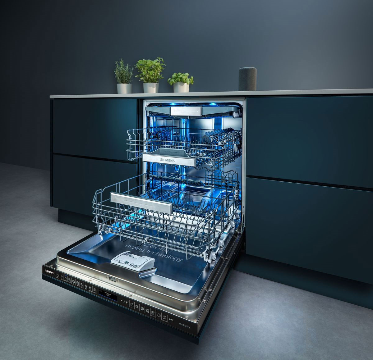 Die Spülmaschine ist voll. Also Tab rein und dann drückt man die Taste, die man immer nimmt. Aber ist das gewählte Programm auch wirklich das optimale? Diese Frage stellt sich bei der smarten Spülmaschine nicht. Denn die wählt je nach Geschirrmenge und Verschmutzungsgrad das passende Programm. Das Ganze funktioniert über einen Beladungssensor. Einige Maschinen, wie die von Siemens, regeln mittels eines Aquasensors zudem den Wasserverbrauch. Der ist dann ganz besonders niedrig. Auch wer ganz schnell trockenes Geschirr braucht, der kann das ebenfalls einstellen. Nach Ende des Spülprogramms steht dann sofort ein trockener Teller zur Verfügung. Übrigens, man kann natürlich die Maschine auch dann starten, wenn der Strom am günstigsten ist.