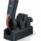 Zwei längenverstellbare Kammaufsätze, ein Detailaufsatz mit schmaler Konturklinge sowie ein extra Kammaufsatz für einen, drei oder fünf Millimeter Schnitt ermöglichen das Bartstylings. Nach einer Ladezeit von 60 Minuten, kann der Bartschneider ebenso lange im Akkubetrieb genutzt werden.