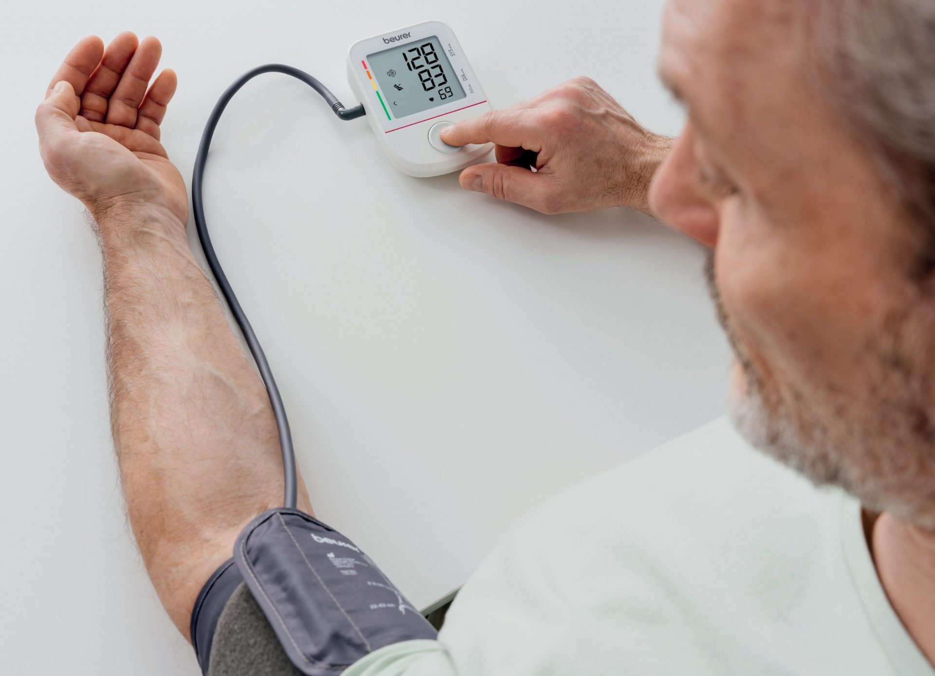 Das Beurer Blutdruckmessgerät BM 38 bietet eine einfache Bedienung. Nach der Messung können die Messergebnisse mit Hilfe der „Scan & Save”-Funktion der „beurer HealthManager Pro” App in diese übertragen und digital dokumentiert werden.