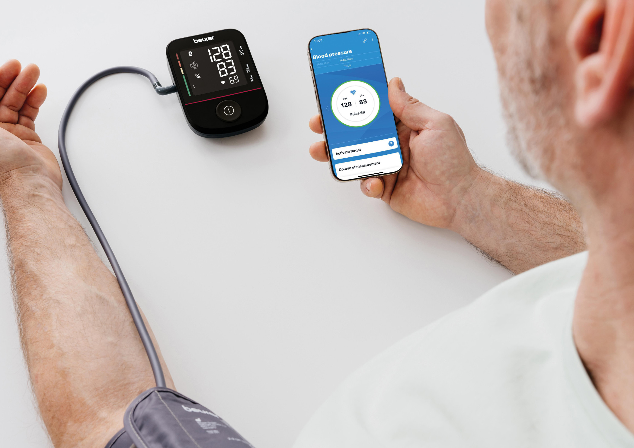 Das Beurer Blutdruckmessgerät BM 48 mit Bluetooth-Funktion bietet eine einfache Möglichkeit, die Blutdruckwerte mit der App beurer HealthManager Pro jederzeit im Blick zu behalten.