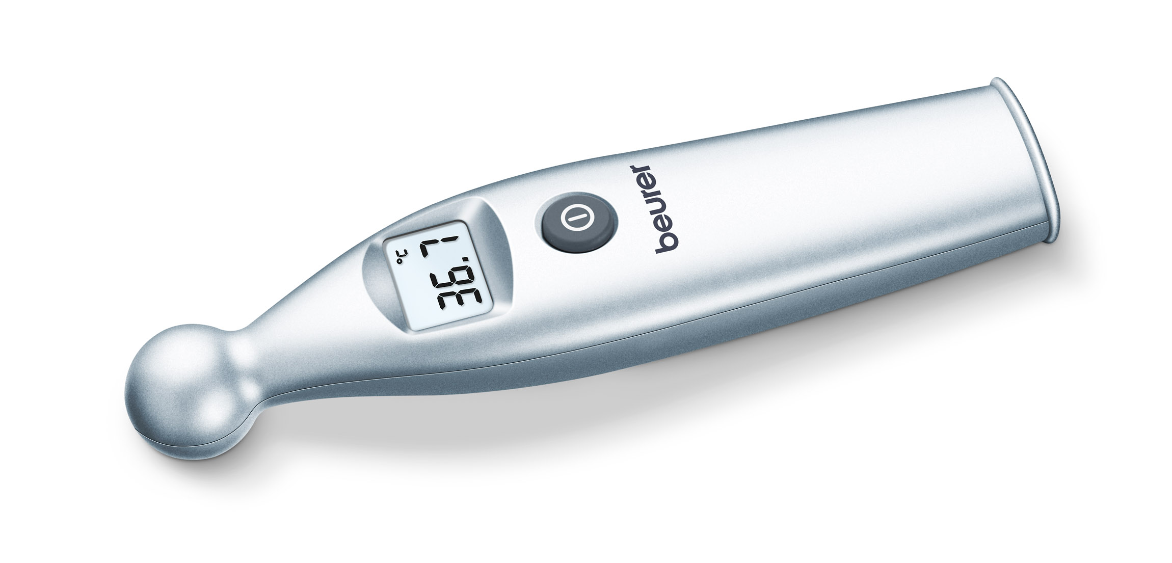 Das Beurer Fieberthermometer FT45 (erstmals auf der MEDICA 2010 vorgestellt) ermittelt die Körpertemperatur in nur ca. sieben Sekunden auf der Stirn, wobei das Ende der Messung durch einen Ton signalisiert wird. Das Kontaktthermometer auf der Stirn auflegen, messen, fertig. Die Maßeinheit kann wahlweise zwischen Celsius und Fahrenheit umgeschaltet werden. Ohne Glas und quecksilberfrei gewährleistet das kompakte Beurer Fieberthermometer FT45 einen sicheren Einsatz und kann bei Bedarf desinfiziert werden. Die Abschaltautomatik schont die mitgelieferten Batterien.