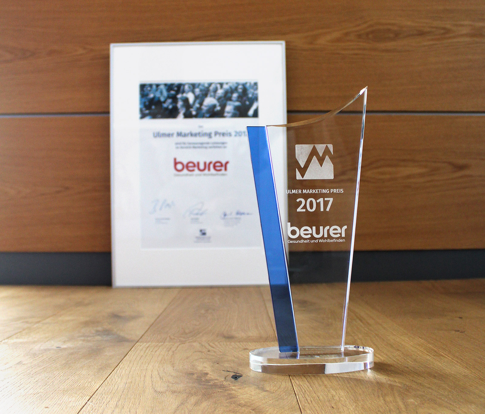 „Um sich in einer wirtschaftlich starken Region wie Ulm in einem Wettbewerb wie diesem von den Mitbewerbern abzuheben, muss man innovative Ideen vorzeigen können und hierfür auch mal neue Wege ausprobieren“, erklärte Beurer Marketingleiterin Kerstin Glanzer bei der Preisverleihung. Und: „Wir freuen uns sehr, dass der Marketingclub unseren Ansatz und Konzept würdigt und unsere Marketingleistung mit Platz 1 beim Ulmer Marketing Preis belohnt“.