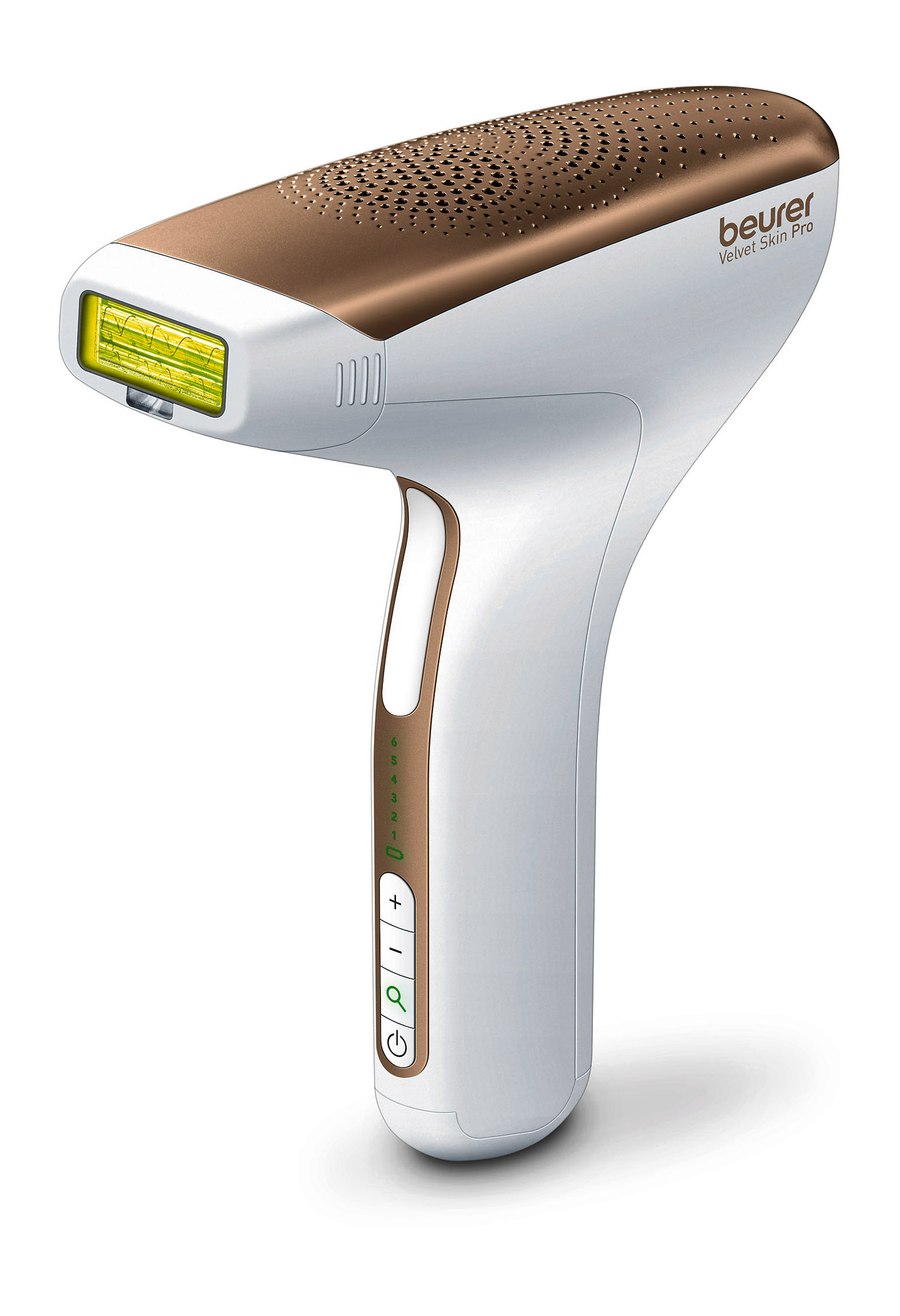 Ein automatischer Energiestufenvorschlag empfiehlt, welche der sechs Stufen verwendet werden soll. Die Lichtfläche beträgt 4,5 cm², ein Präzisionsaufsatz für Gesicht und Bikinizone wird mitgeliefert. Der Epilierer ist mit einem 2-in-1 Hauttypen- und Hautkontaktsensor ausgestattet.