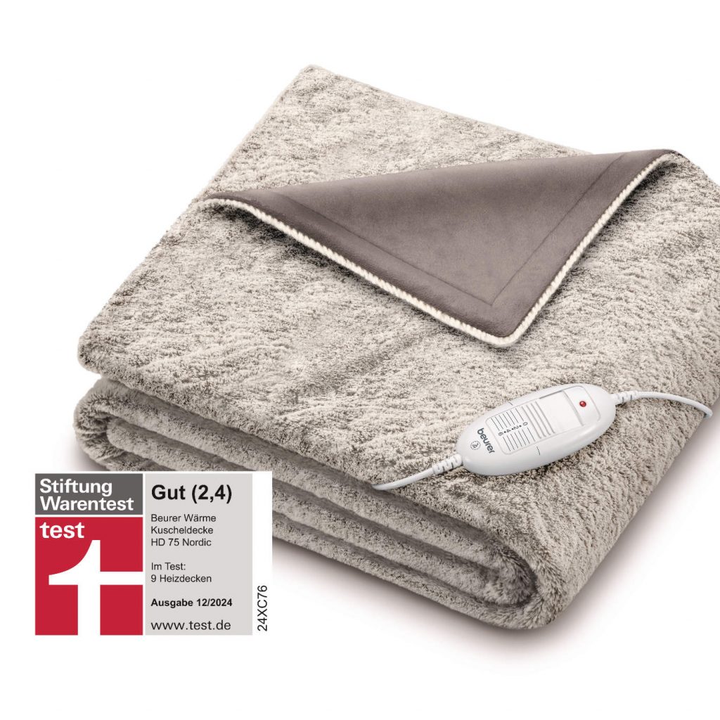 Die Wärmezudecke HD 75 Nordic von Beurer hat bei einem Test der Stiftung Warentest überzeugt. Im Vergleichstest von neun Heizdecken, veröffentlicht in der Ausgabe 12/2024, erhielt das Modell die Gesamtnote „gut“ (2,4). Besonders hervorzuheben sind die Leistungen in den Kategorien Heizfunktion, Haltbarkeit und Sicherheit, in denen die HD 75 Nordic mit der Note „sehr gut“ bewertet wurde.