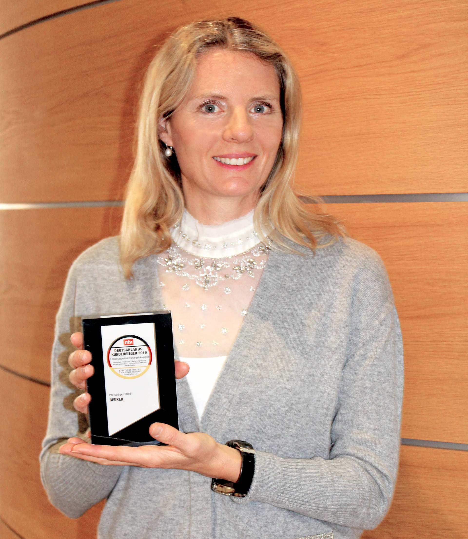 Beurer ist Sieger in der vom Deutschen Institut für Service-Qualität DISQ und dem Nachrichtensender ntv durchgeführten Studie „Deutschlands Kundensieger 2019“. Im Rahmen einer Verbraucherbefragung wurden 1.144 Marken und Unternehmen in 53 Kategorien bewertet. Beurer sicherte sich mit 77,1 Punkten den Gesamtsieg in der Kategorie „Gesundheitsvorsorge & -kontrolle“.