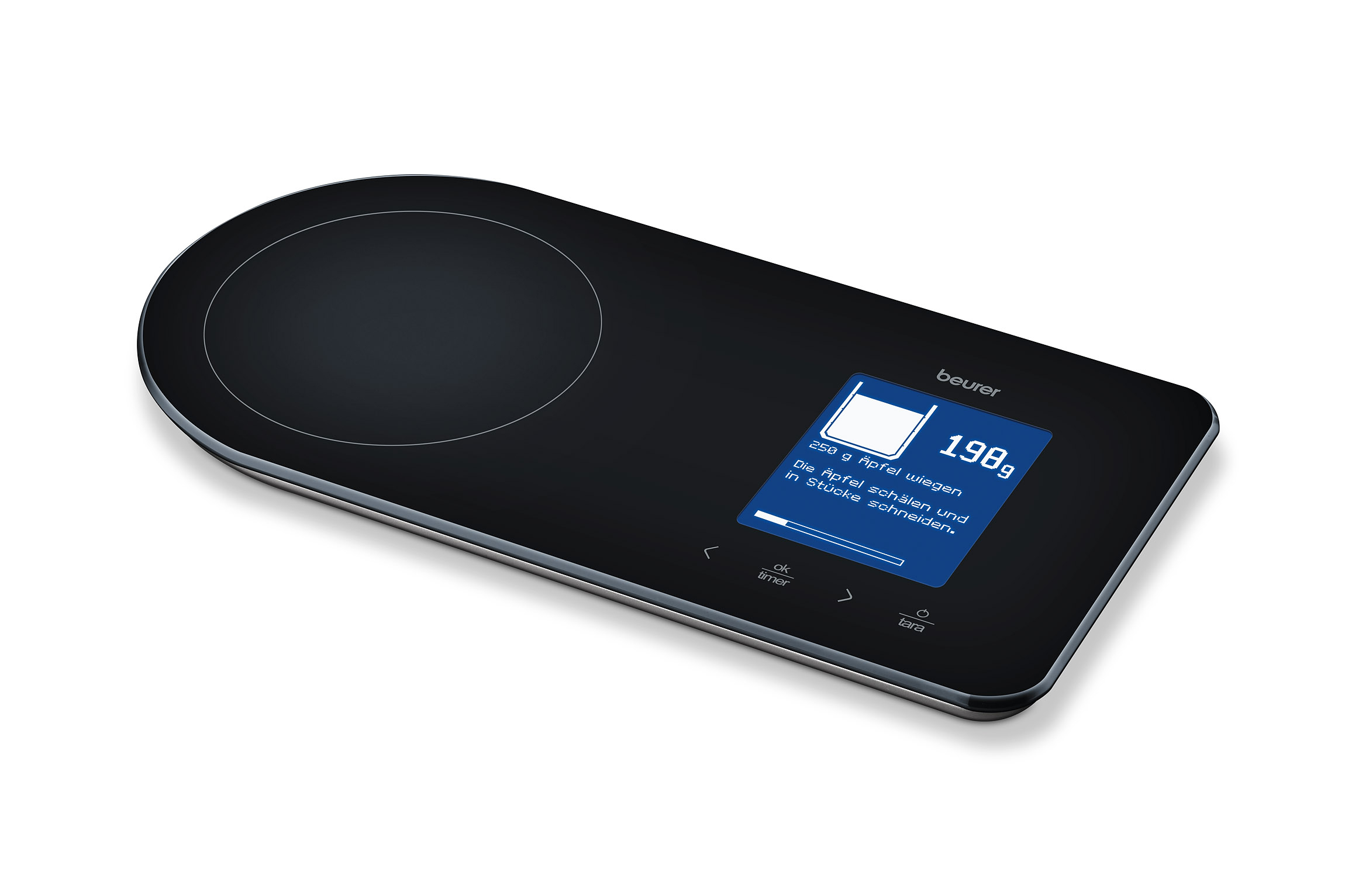 Mit der praktischen Beurer Küchenwaage KS 32 kann der Teig direkt in der großen spülmaschinengeeigneten Rührschüssel zubereitet werden. Das Fassungsvermögen des Gefäßes beträgt ca. 3 Liter. Den Testern fiel besonders positiv auf, dass auch geringste Mengen überaus präzise gemessen werden können. Ebenso punktete die kompakte Bauweise, trotz großer Schüssel. Die Rezeptwaage KS 800 von Beurer ist eine Küchenwaage mit 130 Koch- und Backrezepten des Verlages Gräfe und Unzer. Via Bluetooth Smart Technologie kann ein ausgewähltes Rezept in die kostenlose Beurer Rezeptwaage-App übertragen werden. Schritt für Schritt werden die einzelnen Zubereitungsschritte angezeigt. „Haus & Garten Test“ lobte hier das moderne Design in Verbindung mit der hohen Funktionalität und Messgenauigkeit.