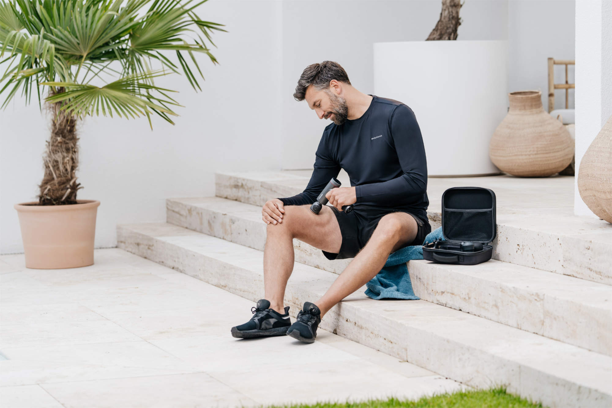 Die MG 195 Massage Gun Hot & Cold von Beurer bietet eine kraftvolle Triggerpunkt-Massage am ganzen Körper. Fotos: Beurer