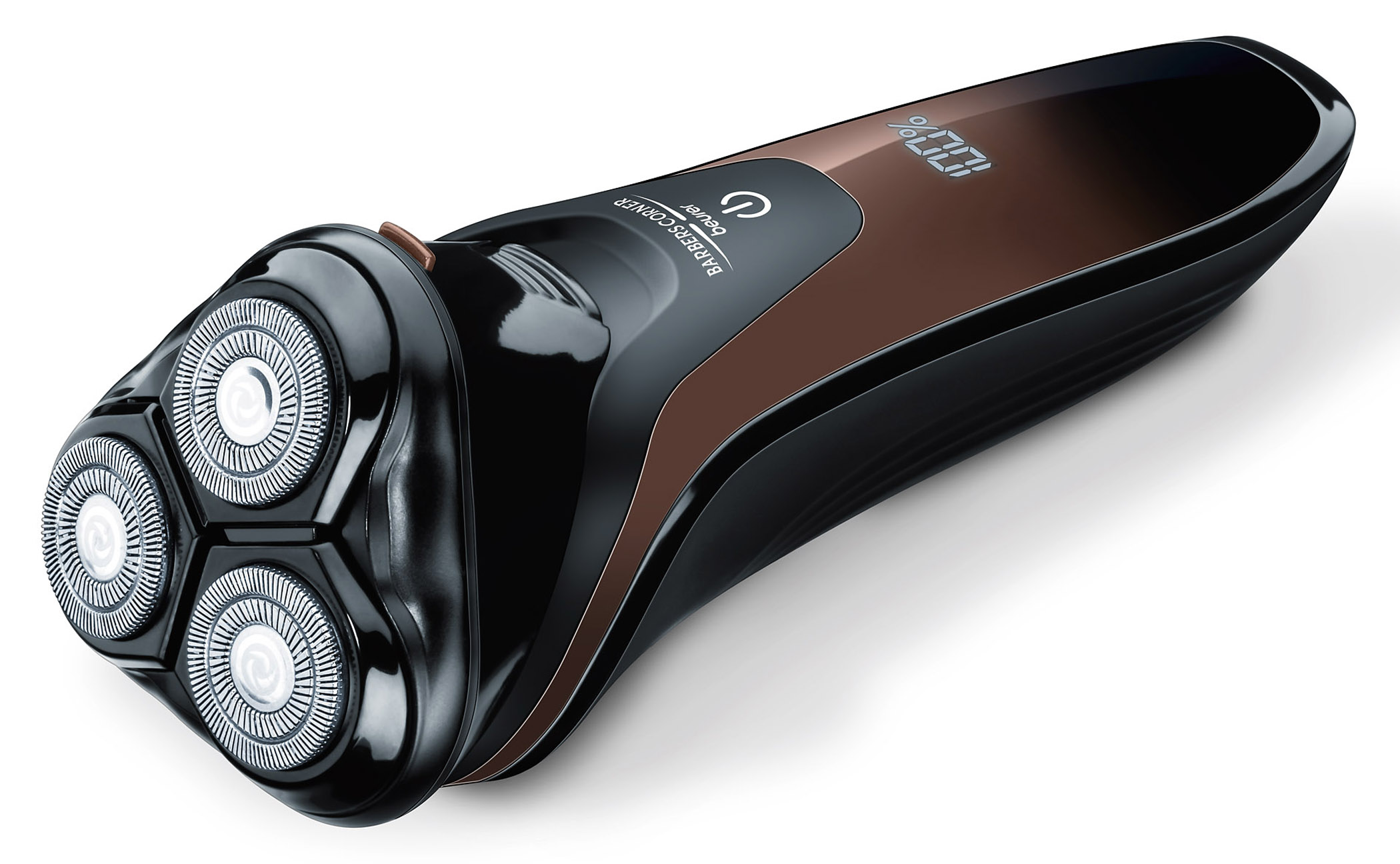Der Beurer Rotationsrasierer HR 8000 rasiert mit drei federnd gelagerten Doppelring-Scherköpfen und dem zusätzlichen 2-in-1-Bart-und-Kotelettenstyler sowie Pop-Up Konturtrimmer.