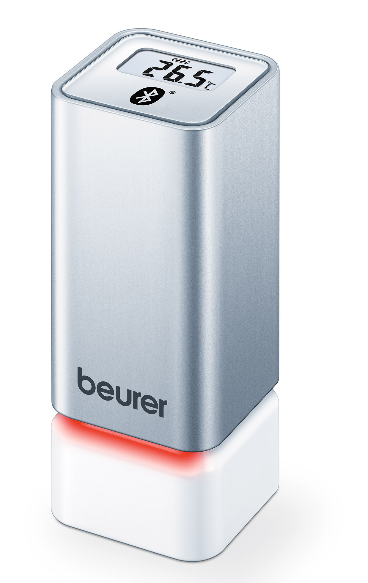 Das Beurer Thermo-Hygrometer HM 55 hilft bei der Beurteilung des optimalen Schlaf-Raumklimas. Es zeigt die aktuelle Uhrzeit, Temperatur und relative Luftfeuchtigkeit an. Daneben gibt der Raumklima-Indikator über Farbanzeige eine schnelle Einordnung der Raumluftqualität. Die Referenzwerte sind individuell einstellbar. Die kleine, elegante Form des Gerätes ermöglicht eine unauffällige Kontrolle des Raumklimas. Das Gerät ist Bluetooth®-fähig und mit der Beurer FreshRoom App kompatibel.