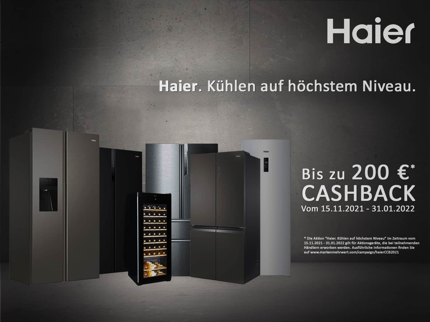 Passend zum Jahresendgeschäft hat Haier unter dem Titel „Haier. Kühlen auf höchstem Niveau“ eine Cashback-Aktion für zahlreiche Kühlgeräte gestartet.