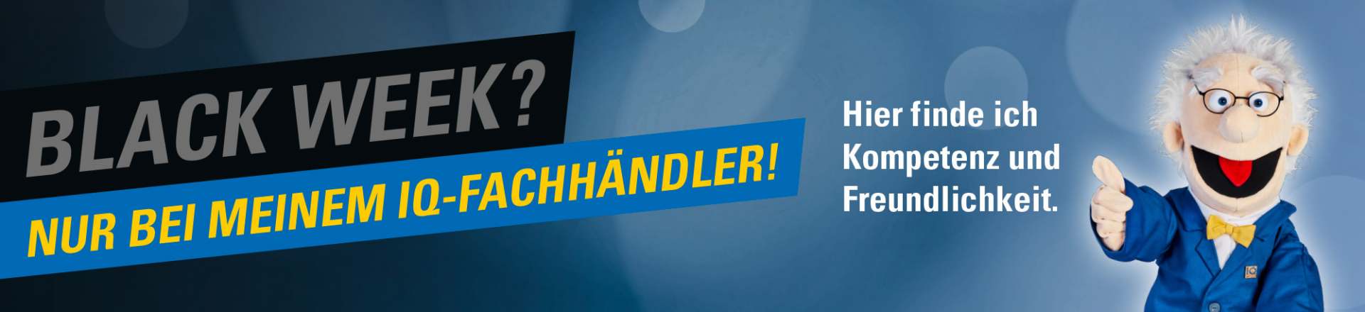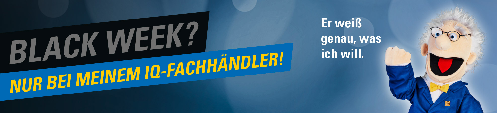 Hauptakteur der Kampagne ist Professor IQ, der sympathische Markenbotschafter der Kooperation, der beim Thema Black Week lächelnd abwinkt. „Black Week? Nur bei meinem Fachhändler!“ lautet sein souveränes Statement, für das er gleich sechs unterschiedliche Begründungen liefert. Diese reichen von Freundlichkeit und Kompetenz über energiesparende Geräte bis zum Meisterbrief – denn all das finden interessierte Kunden bei ihrem IQ-Fachhändler.
