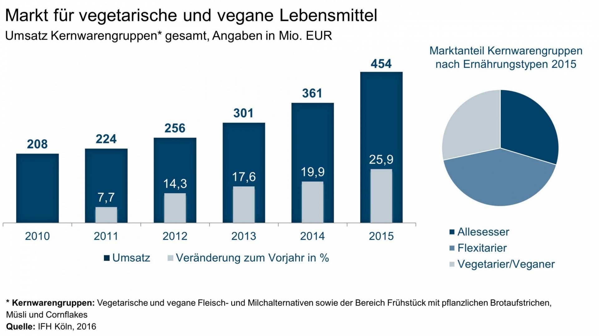 Fleischlose Gerichte und Produkte sprechen nicht nur konsequent fleischlose Esser an, sondern in zunehmender Zahl auch Konsumenten, die nicht jeden Tag Fleisch essen wollen. Dazu zählen Flexitarier, die sich größtenteils, aber nicht strikt fleischlos ernähren, Pescetarier, die auf Fleisch, aber nicht auf Fisch verzichten, sowie ernährungs- und gesundheitsbewusste Konsumenten. Weitere Zielgruppen sind Allergiker, Konsumenten mit erhöhtem Cholesterinspiegel, aber auch religiöse Gruppen. Laut aktuellem „IFH-Branchenreport Vegetarisch & Vegan“ zählen rund vier Prozent der Bevölkerung zu den „echten“ Vegetariern oder Veganern, die sich konsequent fleischlos bzw. komplett ohne tierische Produkte ernähren. Fast jeder vierte Konsument ist mittlerweile Flexitarier.