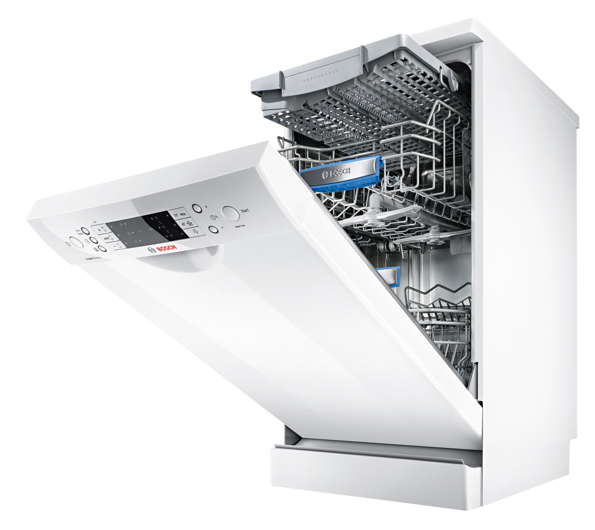 Der Bosch ActiveWater45 2.0 Geschirrspüler ist sparsamer, variabler und komfortabler als sein Vorgänger, so der Hersteller. Der Wasserverbrauch liegt bei 6 Liter im Vergleichsprogramm Eco 50°. Das Gerät ist in der Energieeffizienzklasse A+.