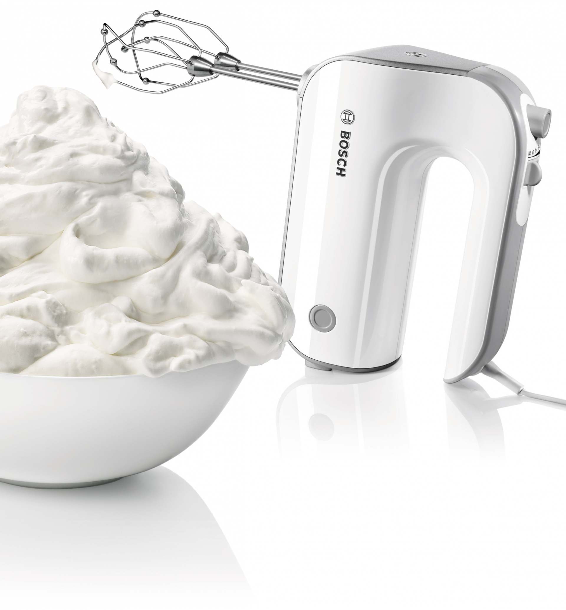 Achtung: Für passionierte Schaumschläger bringt Bosch eine Revolution auf den Markt! Der MFQ 4 Styline ist als erstes und einziges Handrührgerät mit FineCreamer erhältlich. Sein Erfolgsrezept sind vier kleine Kugeln pro Schneebesen. Sie heben mehr Luft unter Sahne, Cremes und Eischnee, Ku-chenteige oder Soufflés und sorgen so für mehr Volumen denn je. Außerdem erbringen die Schneebesen dank innovativer Zusatzausstattung ein feineres, gleichmäßigeres Ergebnis in kürzerer Zeit – Eischnee ist schneller schnittfest, Teig rascher klümpchenfrei, und Sahne wird sogar mehr! Für luftige Leichtigkeit, mehr Volumen und einen Genuss, der auf der Zunge zergeht.