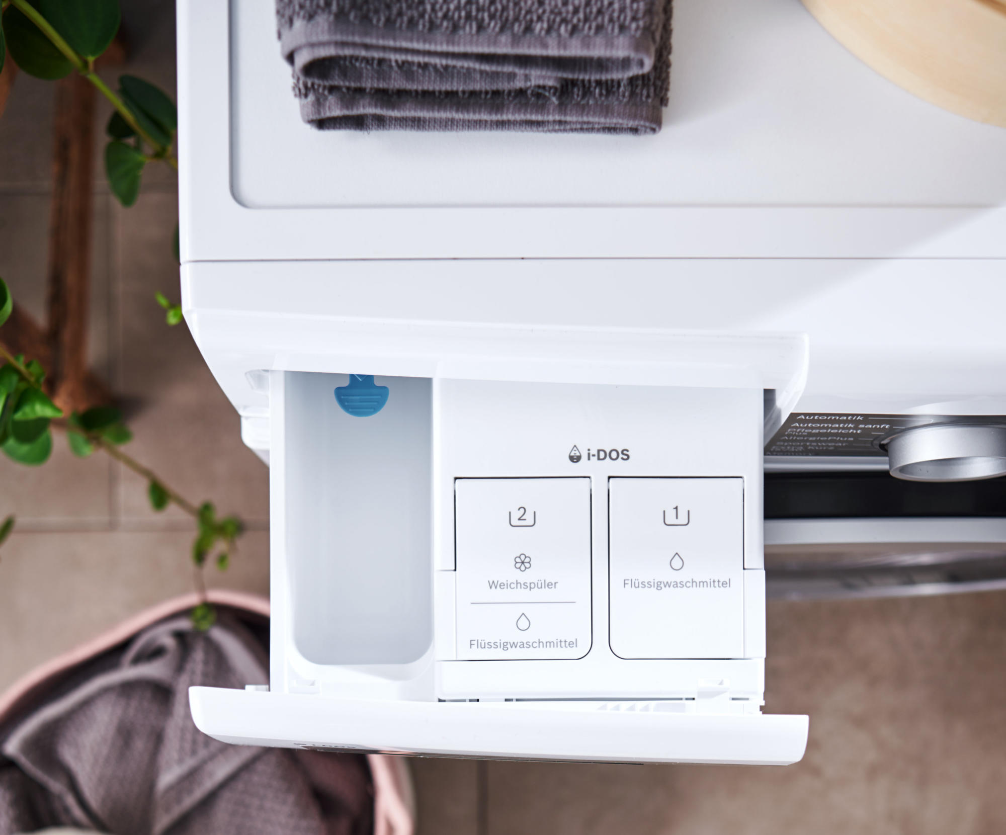 Der Verschmutzungsgrad der Wäsche, der Waschgang, die Menge, die Wasserhärte und die Art des Waschmittels sind Bedingungen, die zur Berechnung der idealen Waschmittelmenge berücksichtigt werden sollten. Die in den meisten Waschmaschinen der Serie 8 verbaute Dosierautomatik für Flüssigwaschmittel i-DOS ist der perfekte Helfer dieser Herausforderung. Über den Home Connect Waschmittel-Scan wird einfach über die Kamera des Smartphones die Dosierempfehlung des Waschmittelherstellers zusammen mit der lokalen Wasserhärte für alle zukünftigen Waschgänge in der Waschmaschine gespeichert.