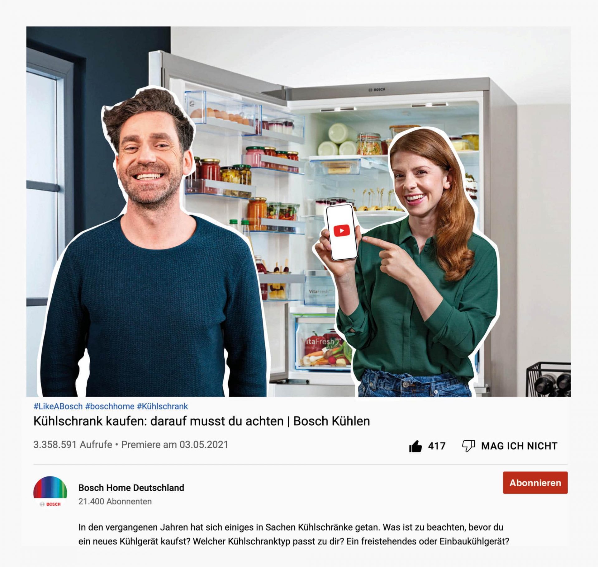Seit 2021 veröffentlicht Bosch eine YouTube Videoreihe, die Haushalten helfen soll, ihr perfektes Hausgerät zu finden und mit alltäglichen Herausforderungen umzugehen.