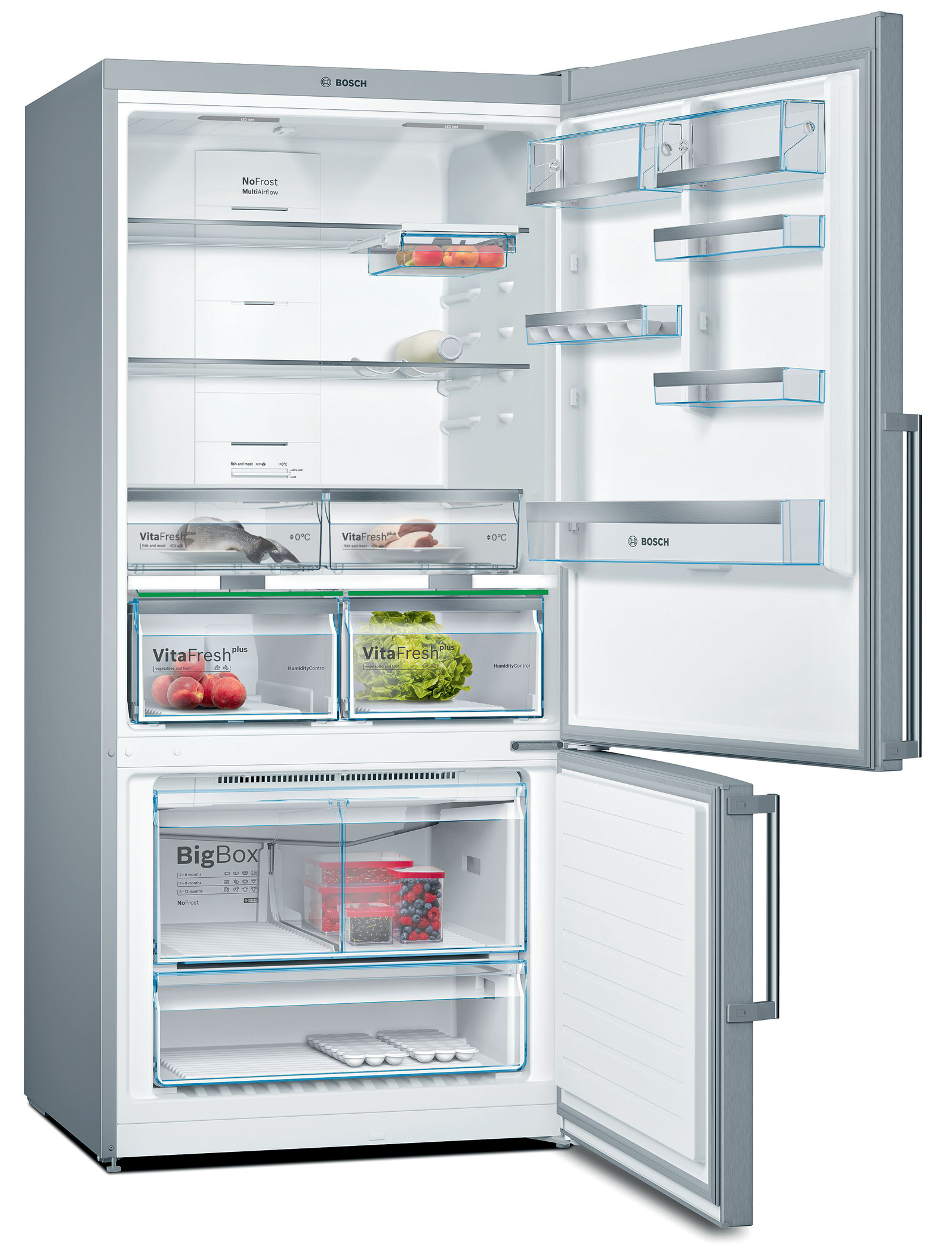 In die breite Kühl- /Gefrierkombination passen sogar Backbleche, Wassermelonen und andere große Lebensmittel. Je nach Modell verstärken höhenverstellbare und ausziehbare Glasplatten. Im Gefrierteil sorgen die LowFrost- bzw. NoFrost-Technologie dafür, dass seltener bzw. gar nicht mehr abgetaut werden muss. Die exakte Temperaturregelung in den Frischesystemen trägt ihren Teil zu idealen Lagerbedingungen bei. Und das bei optimaler Energieeffizienz in der besten Energieeffizienzklasse A+++.