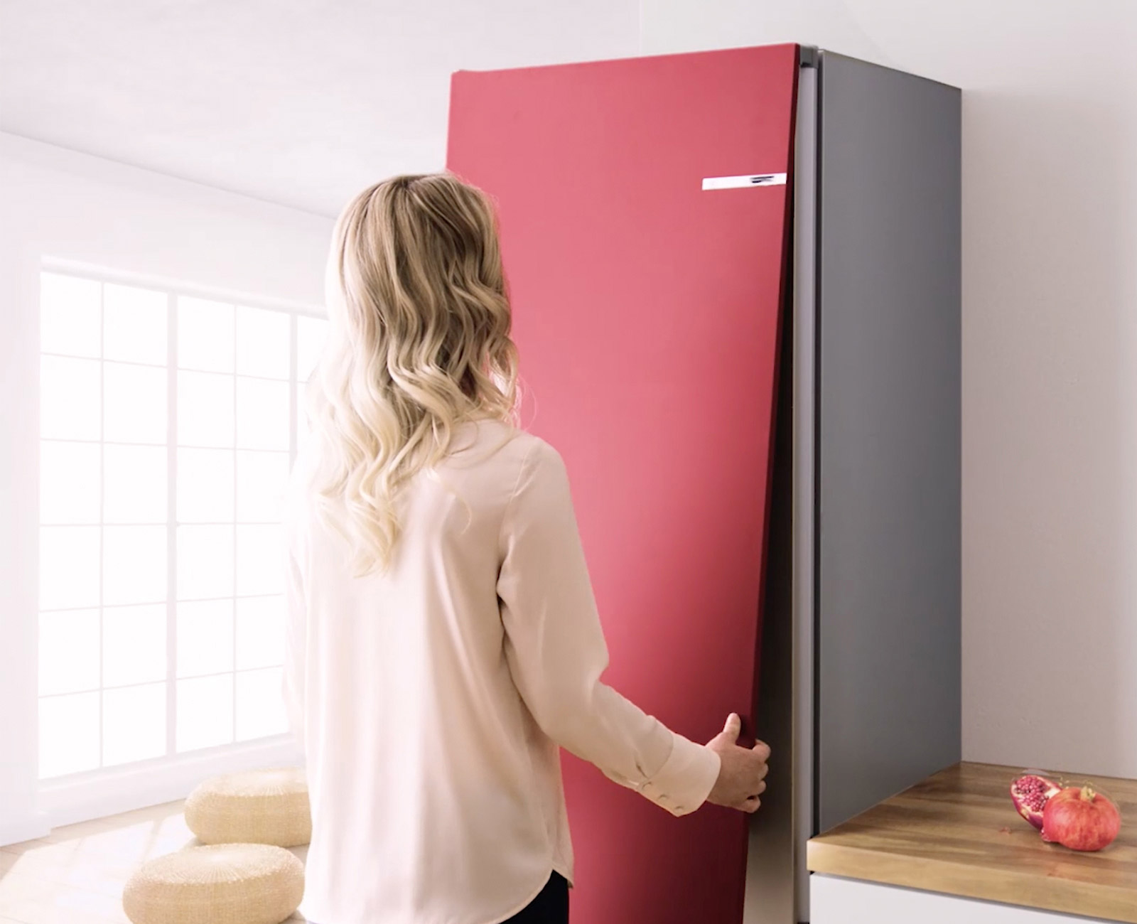 Mit der Kühl-Gefrier-Kombination „Vario Style“ starten Haushalte in eine neue Ära der Individualität und Flexibilität: Je nach Lust und Laune, Lebenssituation und Geschmack können sie ihre Wunschfarbe(n) wählen und den Kühlschrank zum persönlichen Designobjekt machen. Dank eines Befestigungssystems mit verdeckt angebrachten Halterungen und Magneten lassen sich die Türfronten aus hochwertigen, langlebigen Materialien im Handumdrehen und ganz ohne Werkzeug austauschen. Bei den insgesamt 19 Farben setzt Bosch auf zeitgemäße, frische Töne.