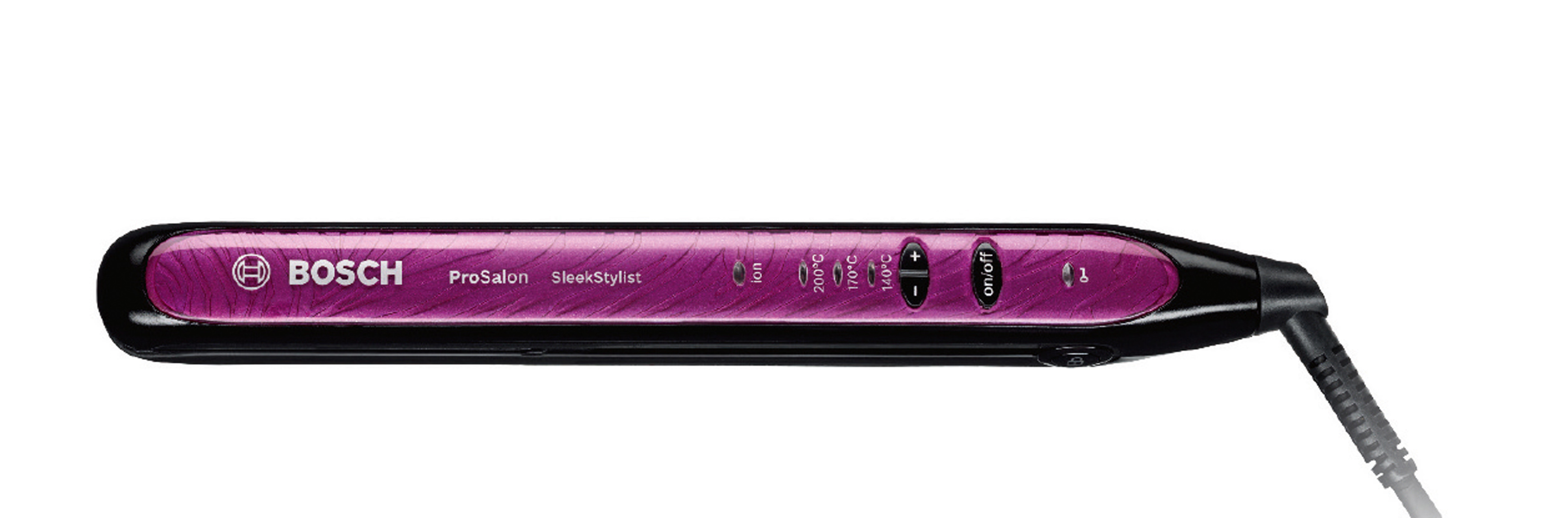 140 °C und 200 °C variabel regeln. Für einen noch sorgsameren Umgang mit dem Haar garantiert der Bosch SleekStylist darüber hinaus eine gleichmäßige Hitzeverteilung: Schädliche Temperaturspitzen werden vermieden, die Glättung gelingt gleichmäßig.
