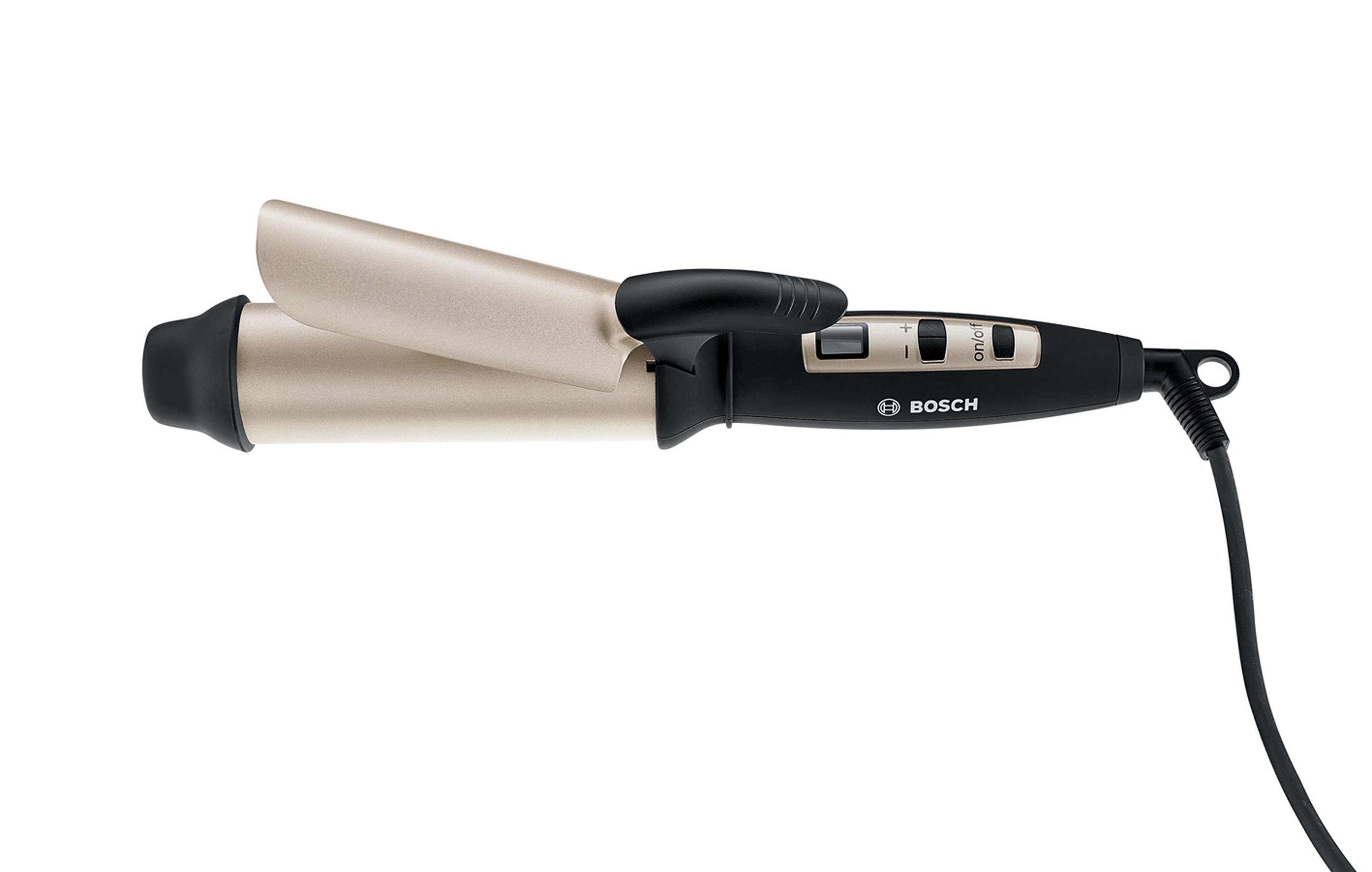 Der neue Bosch PHV9790 Lockenstab ProSalon BigHair ist Teil der ProSalon Reihe von Bosch, erdacht für Frauen, die sich selbst perfekt in Szene setzen möchten. Entsprechend professionell ist die Ausstattung: Mit nur 60 Sekunden Aufheizdauer ist der Big-Hair in kürzester Zeit betriebsbereit. Nicht weniger als neun Leistungsstufen zwischen 120 °C und 200 °C ermöglichen eine exakt auf die eigene Haarstruktur abgestimmte Behandlung. Die genaue Temperatur lässt sich dabei im Klartext an der LCD-Anzeige ablesen. Denkbar leicht gemacht wird die Handhabung zudem durch den angenehm rutschfesten SoftTouch-Griff. Das extralange 3-Meter-Kabel ist per 360°-Gelenk mit dem Gerät verbunden – für verwicklungsfreies Drehen und Wenden vor dem Spiegel.