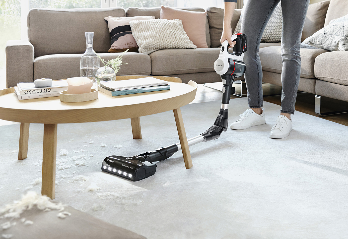 Die integrierten LED-Bodenleuchten spüren auch gut Verborgenes auf und die 180° Rotation der Bodendüse sorgt für zusätzliche Flexibilität.