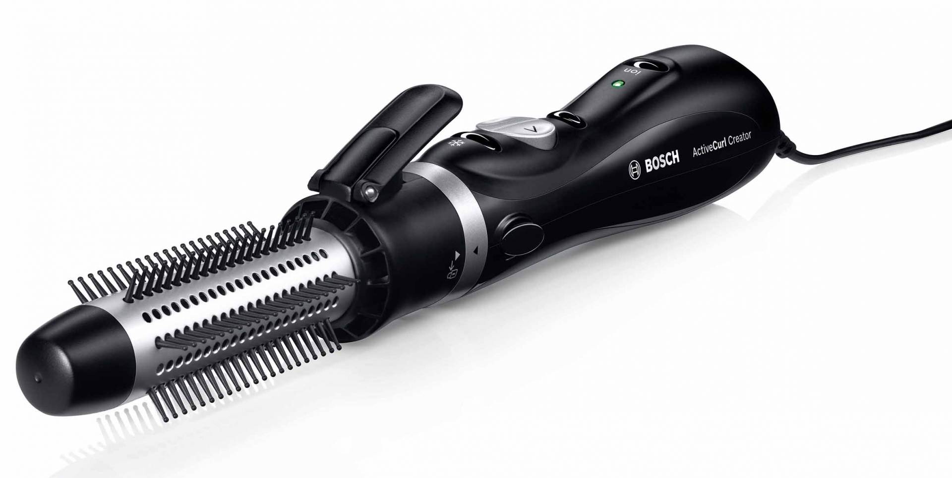 Die Bosch Warmluftbürste ProSalon StyleAssistant ActiveCurl Creator schafft Volumen und kreiert Locken. Damit wird das Hantieren mit Rundbürste und Haartrockner überflüssig. Das Gerät hat eine Leistung von 700 Watt.