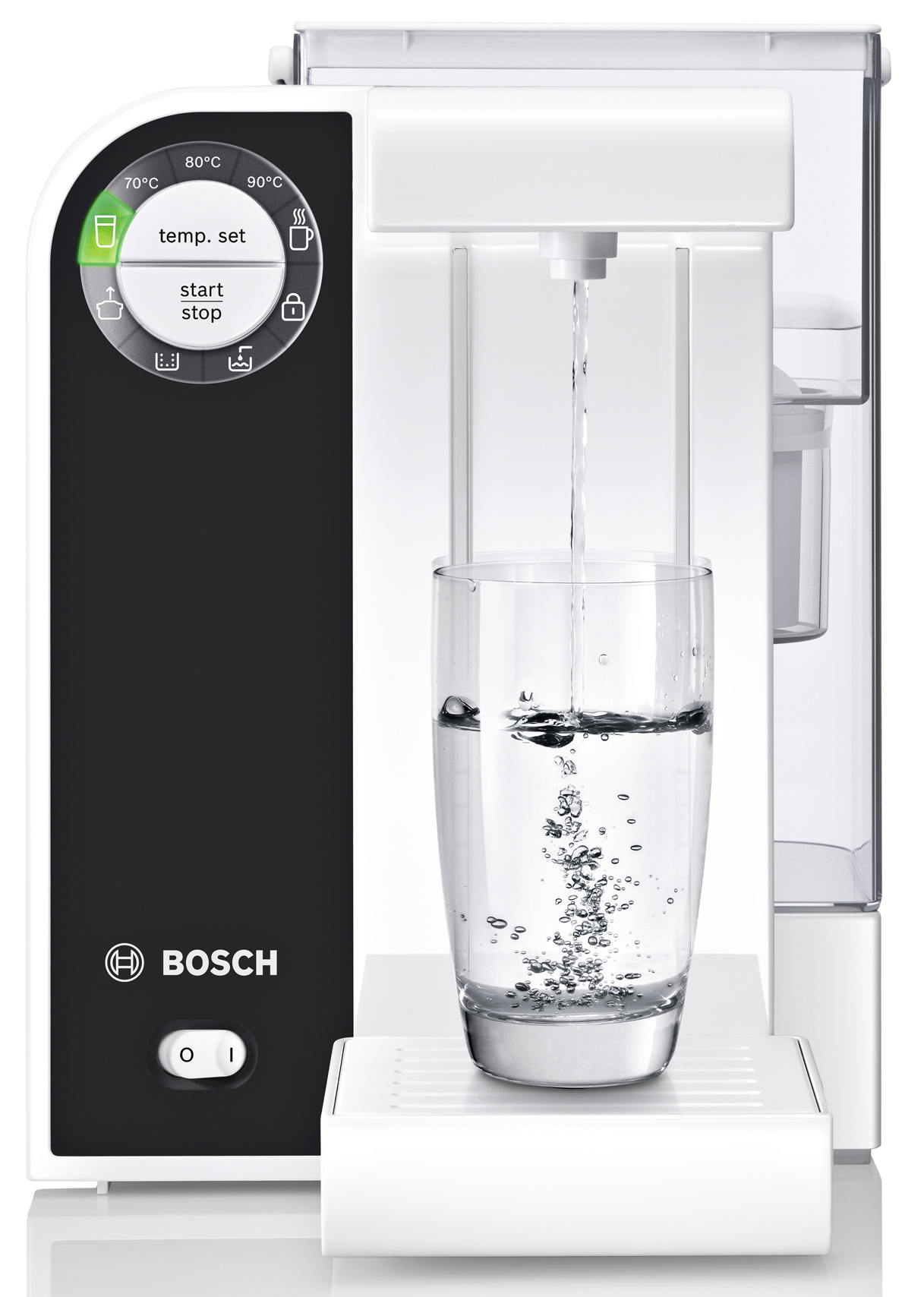 Der Bosch Wasserkocher Filtrino ist eine Kombination aus Wasserfilter mit Premium-Wasserkocher. Zeit- und energiesparend spendet er Wasser auf Knopfdruck: zimmerwarm, 70, 80 und 90 °C heiß oder kochend.