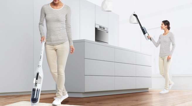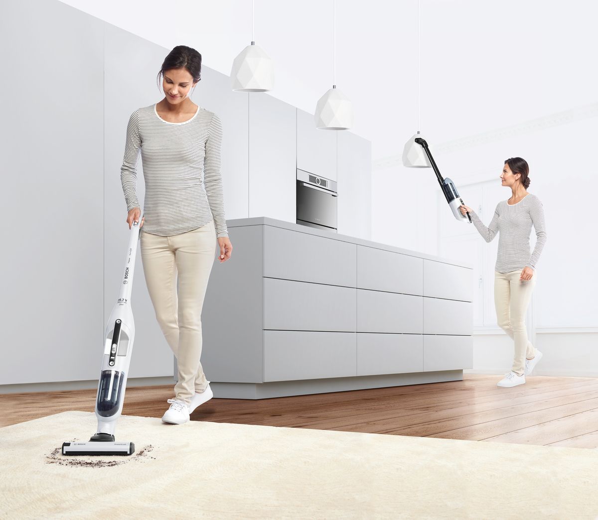 Der handlich-schlanke, kabelunabhängige Bosch Flexxo Staubsauger ist optimal für den flexiblen Einsatz im Haus geeignet – seine starke Saugleistung sorgt für die effiziente Reinigung von Fußboden, Couch und allen Möbelstücken.