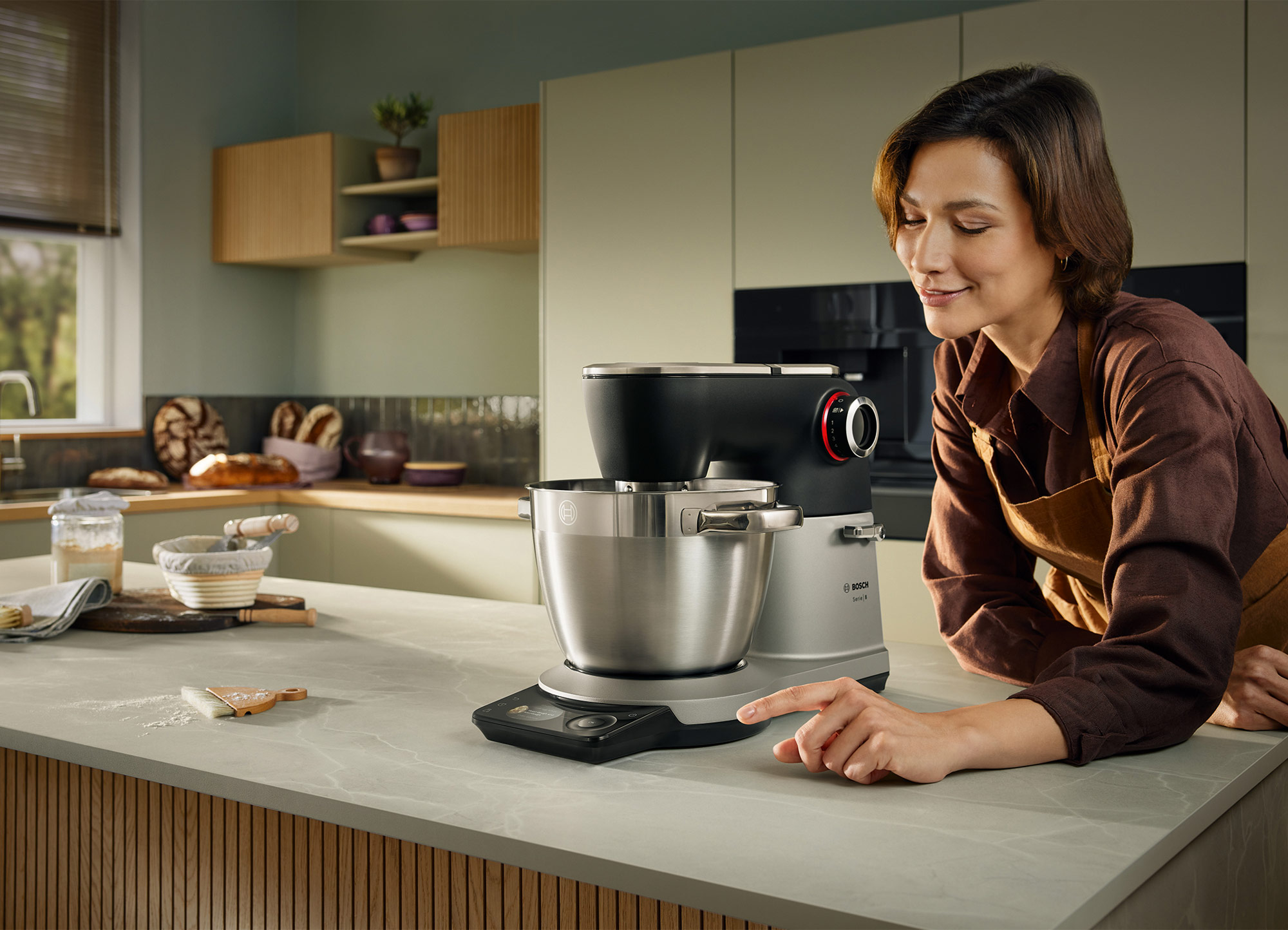 Die Bosch Küchenmaschine der Serie 8 mit 1.800 Watt und 3D-planetarischem Rührwerk – ausgelegt für kraftvolle und gleichmäßige Teigverarbeitung, ideal auch für Brandteig wie bei der Churros-Zubereitung.