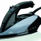 Der Textilprotektor des Braun Bügeleisen TexStyle 775 TP zum Aufklicken auf die Bügelsohle sorgt für eine sofortige Reduzierung der Temperatur direkt am Gewebe. Dabei bleibt die volle Dampfleistung erhalten, womit selbst tiefe Falten aus empfindlichen Stoffen wie Seide schonend und entfernt werden können. Auch Glanzstellen auf dunklen Materialen vermeidet der Protector. Zur weiteren Ausstattung gehören der offene, ergonomisch geformte Griff, eine Tankkapazität von 400 ml und ein Turbodampfstoß mit bis zu 170g/min. Das Bügeleisen hat eine Leistung von 2400 Watt