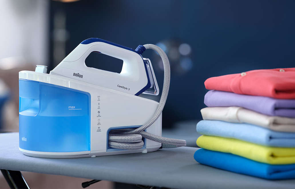 Die Braun Bügelstation CareStyle 3 Pro ist für platzsparende Aufbewahrung und einfaches Handling auf dem Bügelbrett konzipiert. Deshalb ist sie rund 11 % kleiner als das Vorgängermodell.