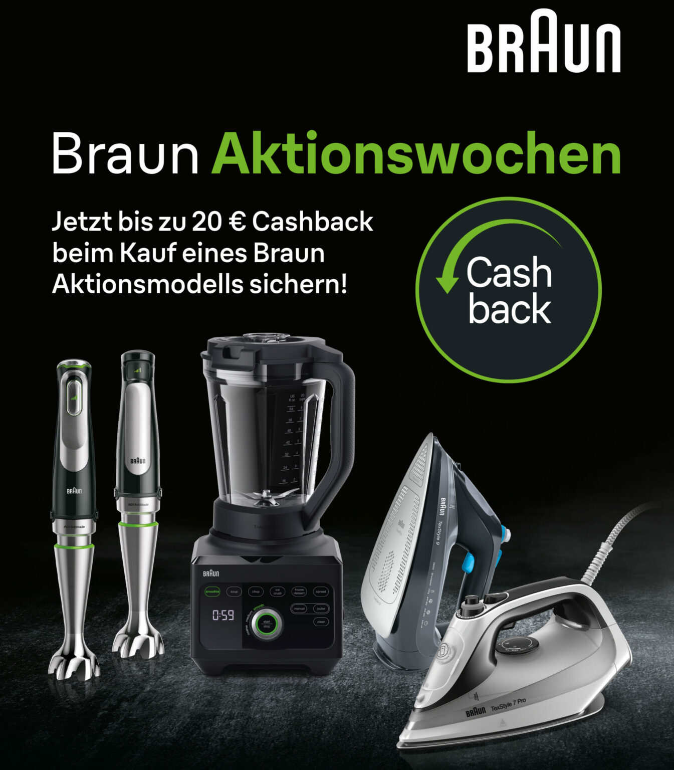 Mit den „Braun Aktionswochen“ lockt Braun Konsumenten in den Handel und unterstützt das Interesse an Produkten für gebügelte Kleidung und gesunde Ernährung mit einer aufmerksamkeitsstarken Cashback-Aktion.
