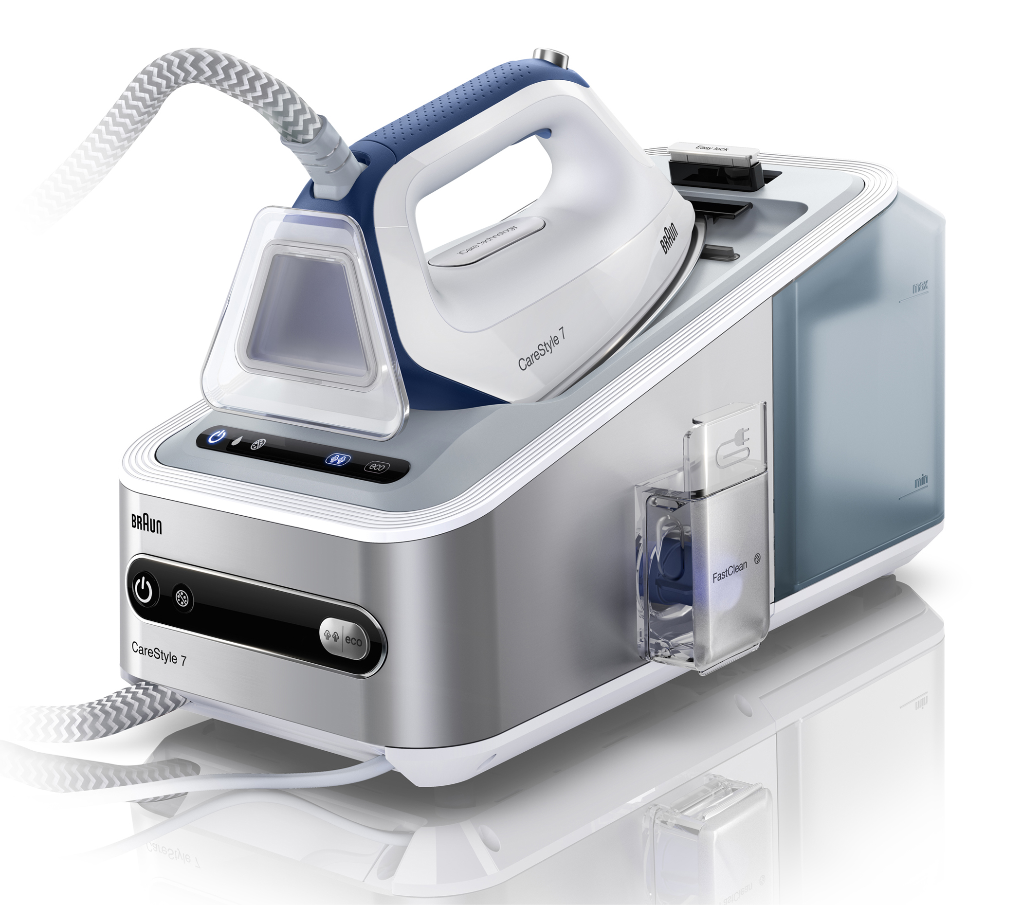 Die Braun Dampfbügelstation CareStyle 7 IS 7143 verfügt über eine noch spitzer zulaufender Bügelsohle als die Vorgängermodelle. Der verbesserte Entkalkungsprozess beschleunigt zudem die Reinigung um ein Vielfaches.