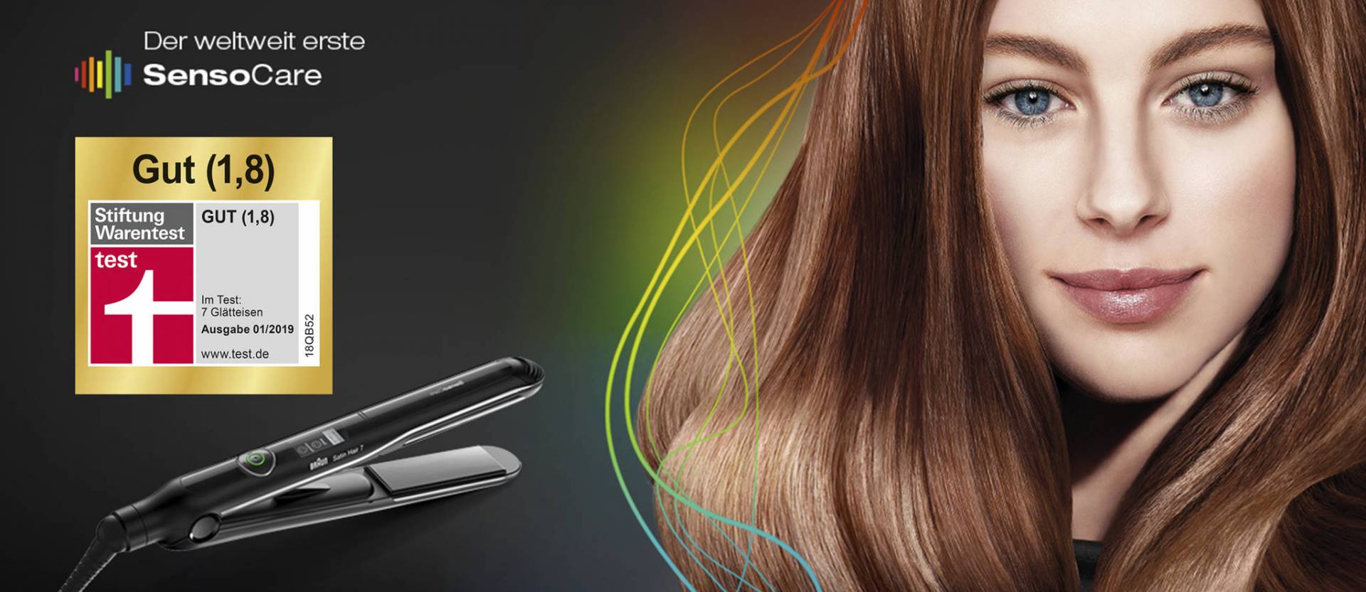 Stiftung Warentest vergleicht in der neuesten Ausgabe des Magazins „test“ (01/2019) sieben Haarglätter und bewertet den Braun Satin Hair 7 SensoCare Styler mit der Note GUT (1,8). Gemeinsam mit einem Haarexperten stellten 26 Probandinnen den Satin Hair 7 SensoCare Haarglätter auf die Probe. Der Praxistest bestätigt: Der Braun Satin Hair 7 gleitet besonders sanft durch das Haar, hinterlässt ein gutes Frisierergebnis und ist besonders sicher in der Handhabung.